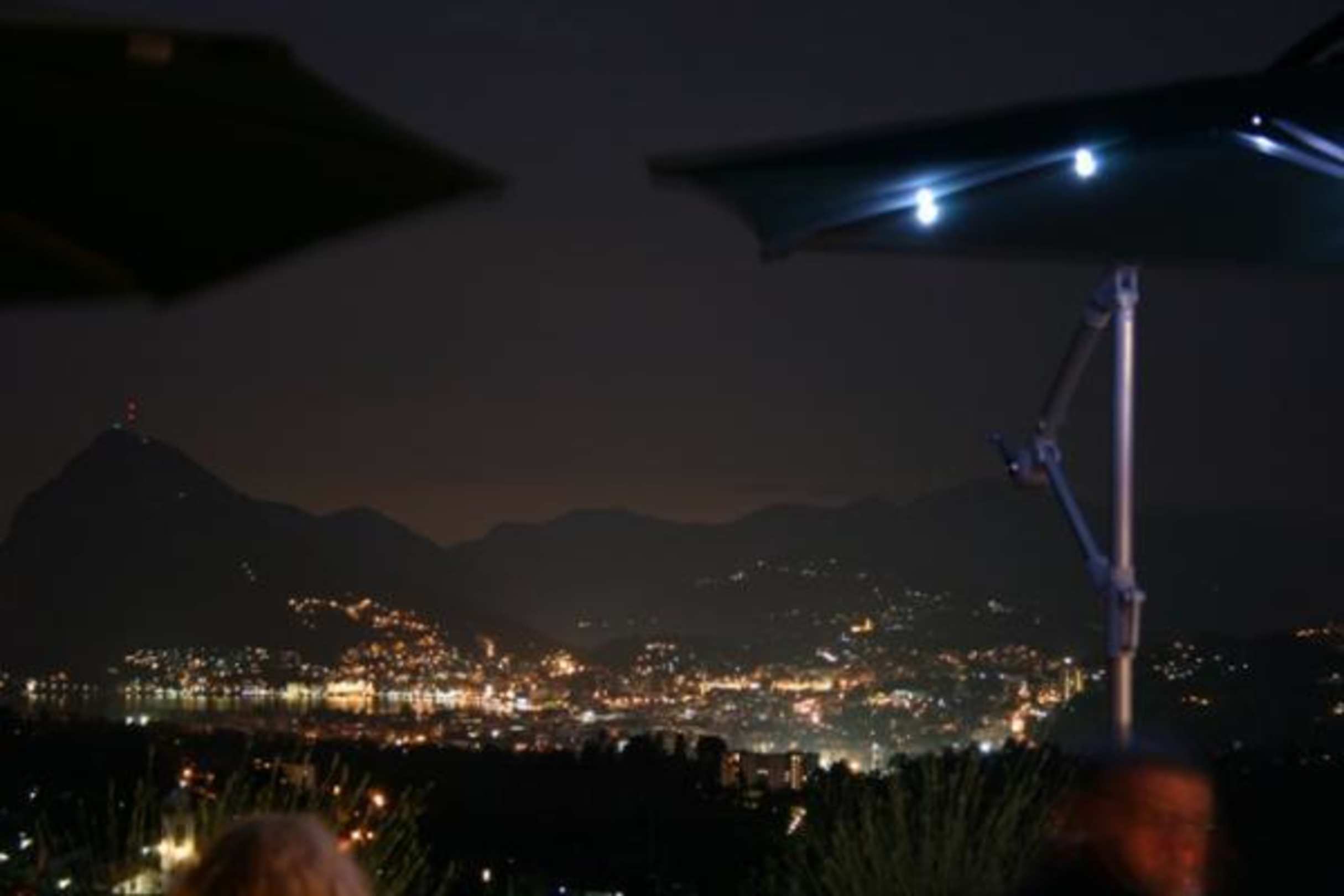 Blick von der ZimmerterrasseBlick von der Zimmerterrasse bzw. vom Restaurant-Wintergarten am Abend auf den Luganer - See.