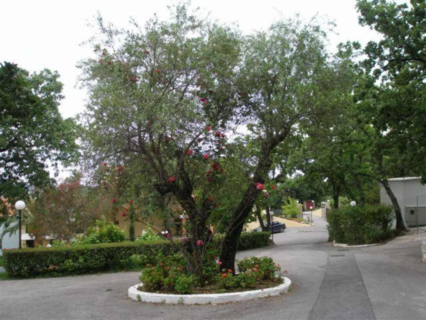 Olivenbaum vereint mit Rosenpflanzen