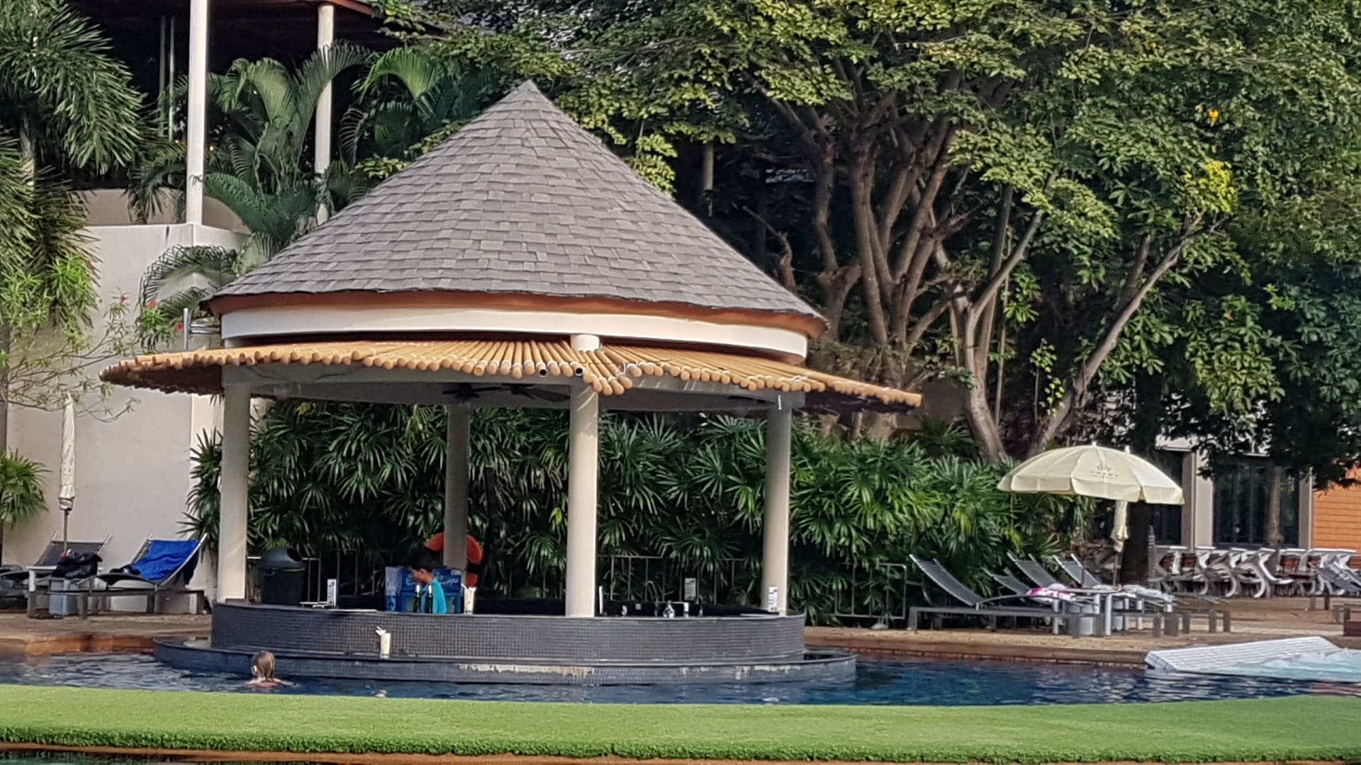 Poolbar, das Dach wird mit Kabelbinder notdürftig gehalten.