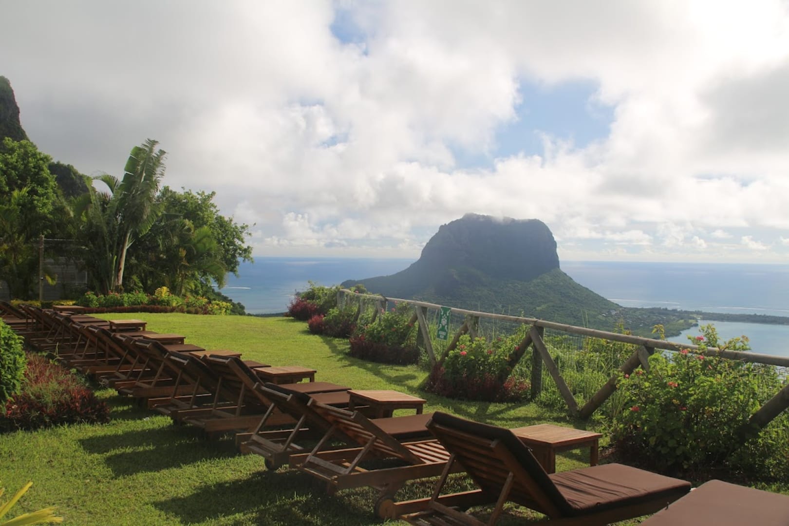 Ausblick le Morne und Liegen ohen Sonnenschirm