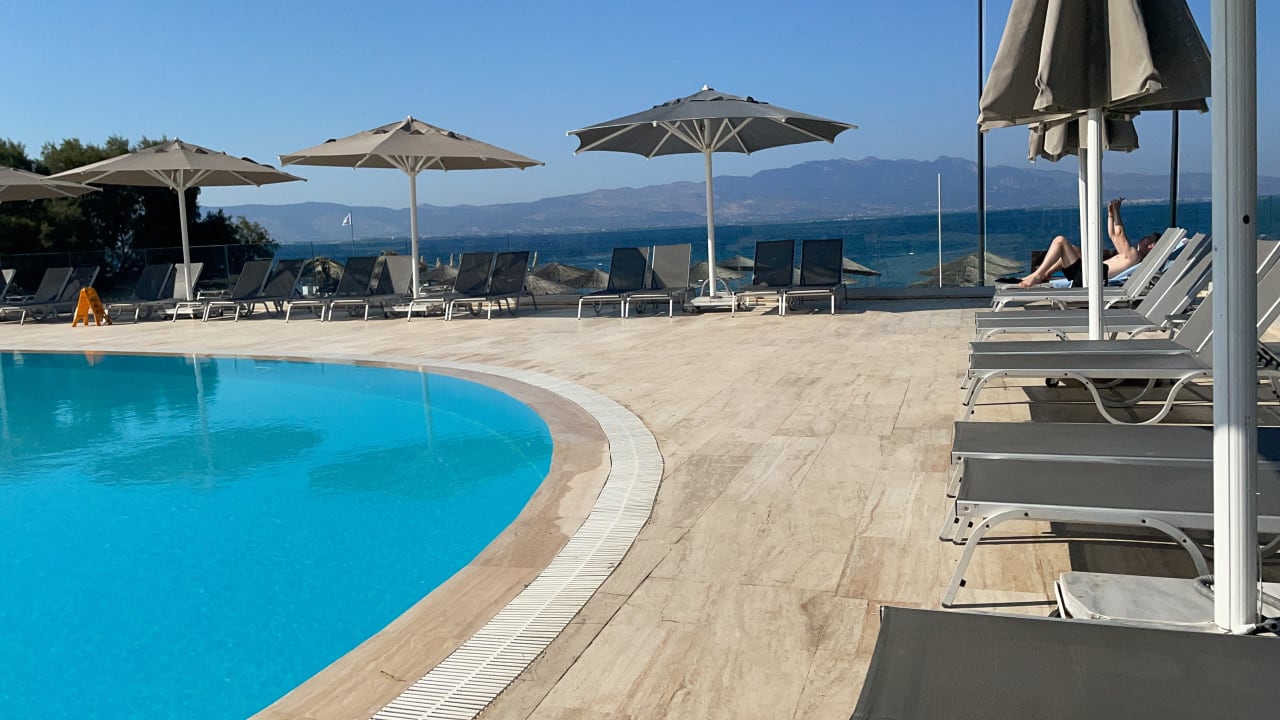 Schöner Pool Sonnenschirme und Liegen