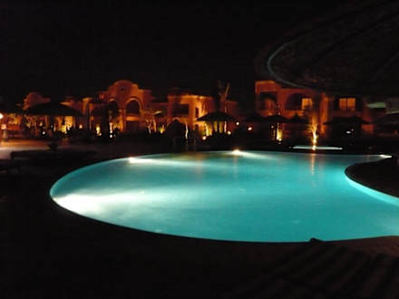 PoolbereichVorderer Poolbereich bei Nacht, im Hintergrund das Kinderbecken