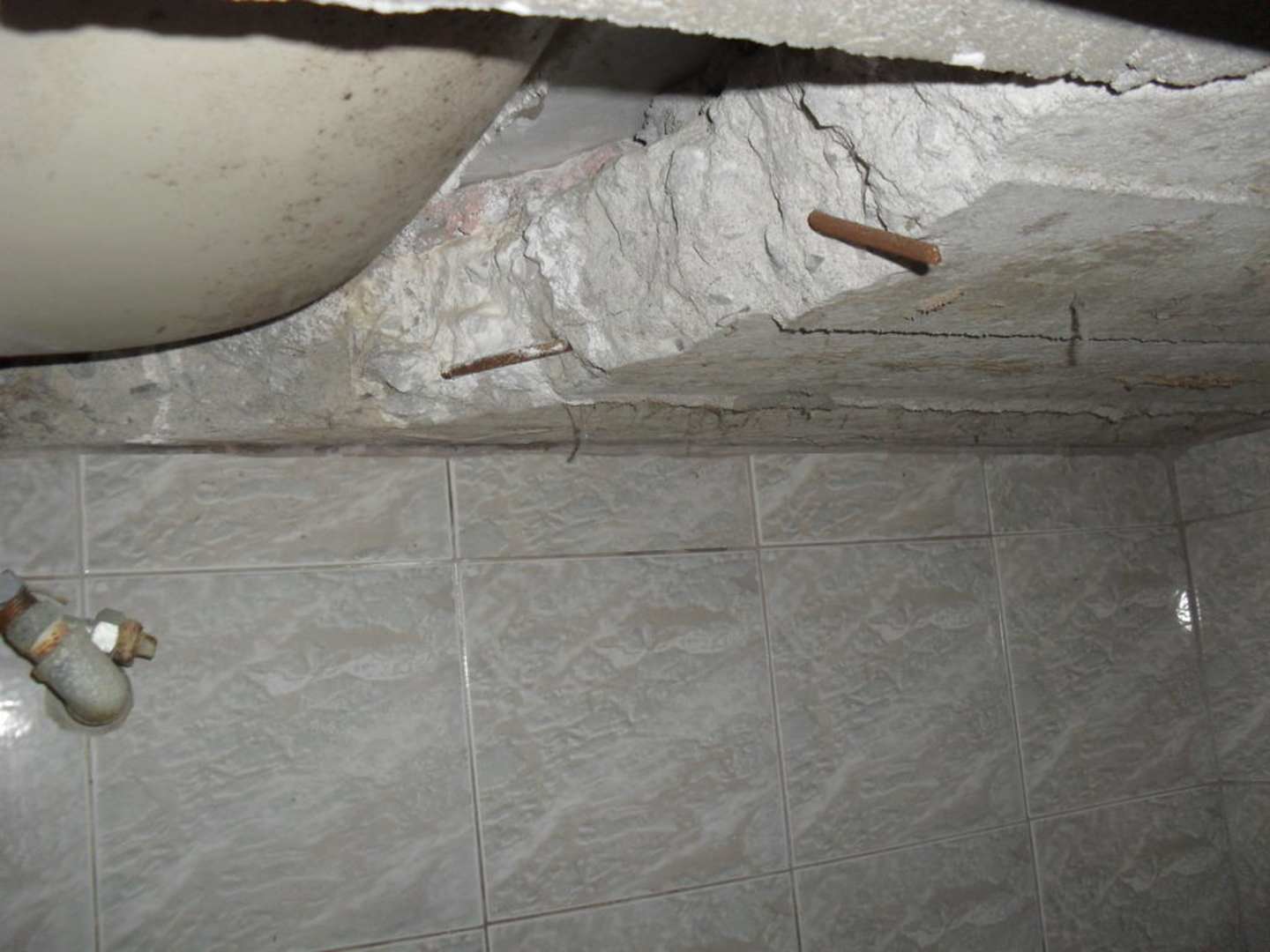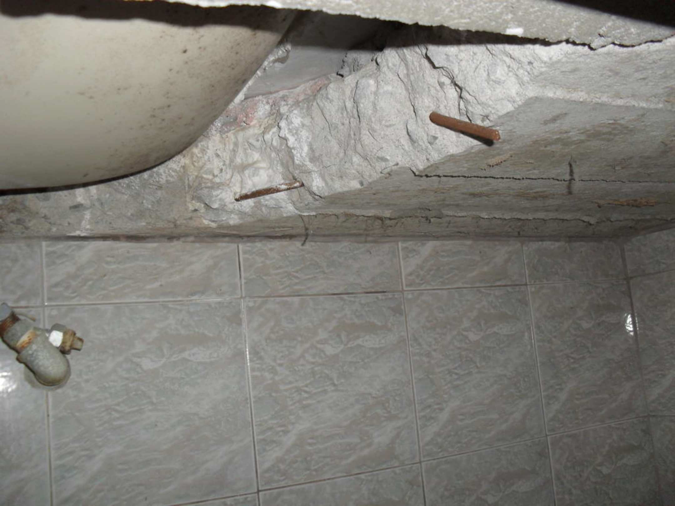Unter dem Waschbeckenso sah es aus unter dem Waschbecken, rostige EWisenteile und herausgerissener Beton