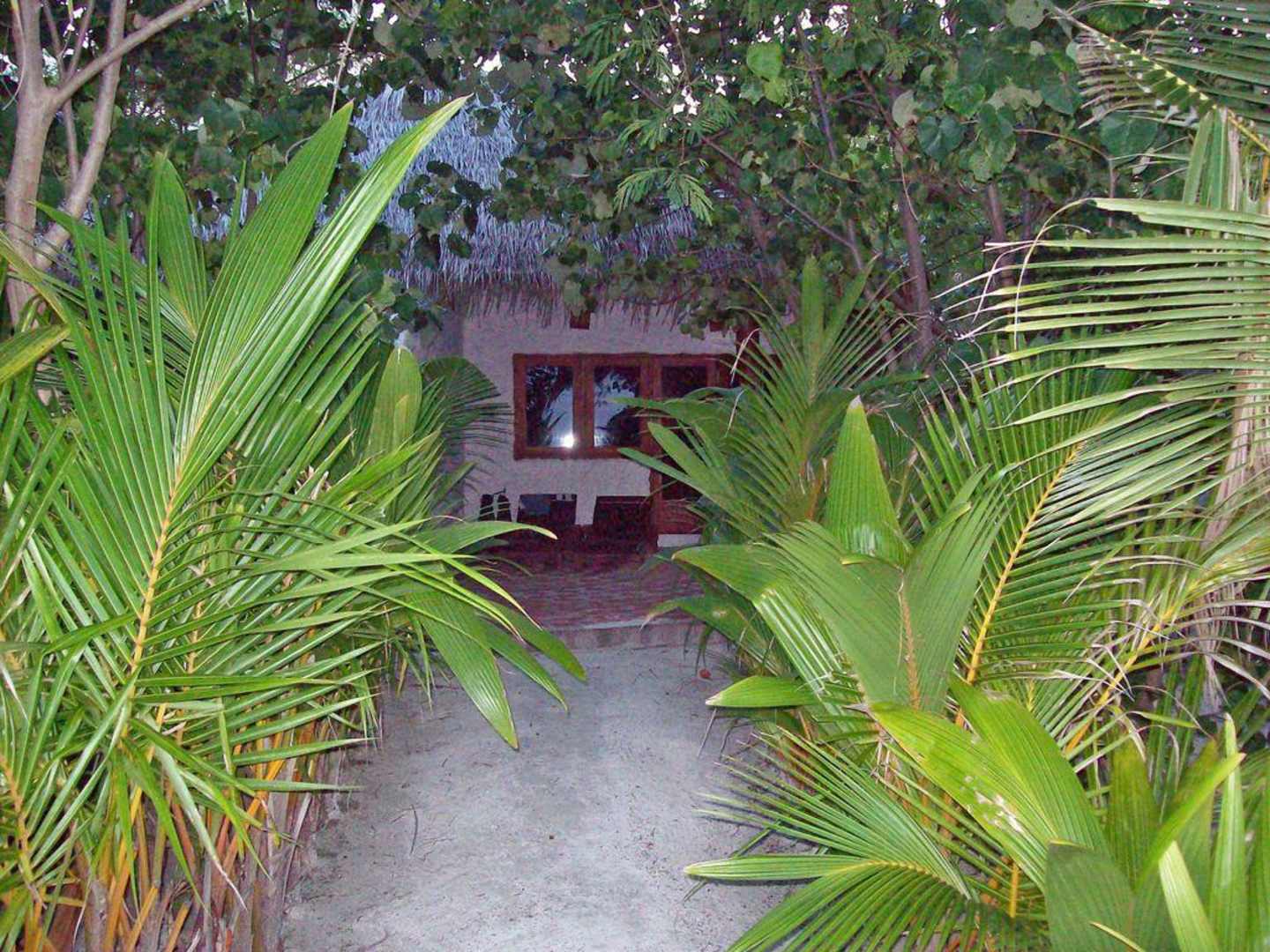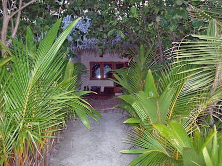 Blick vom Strand auf Bungalow
