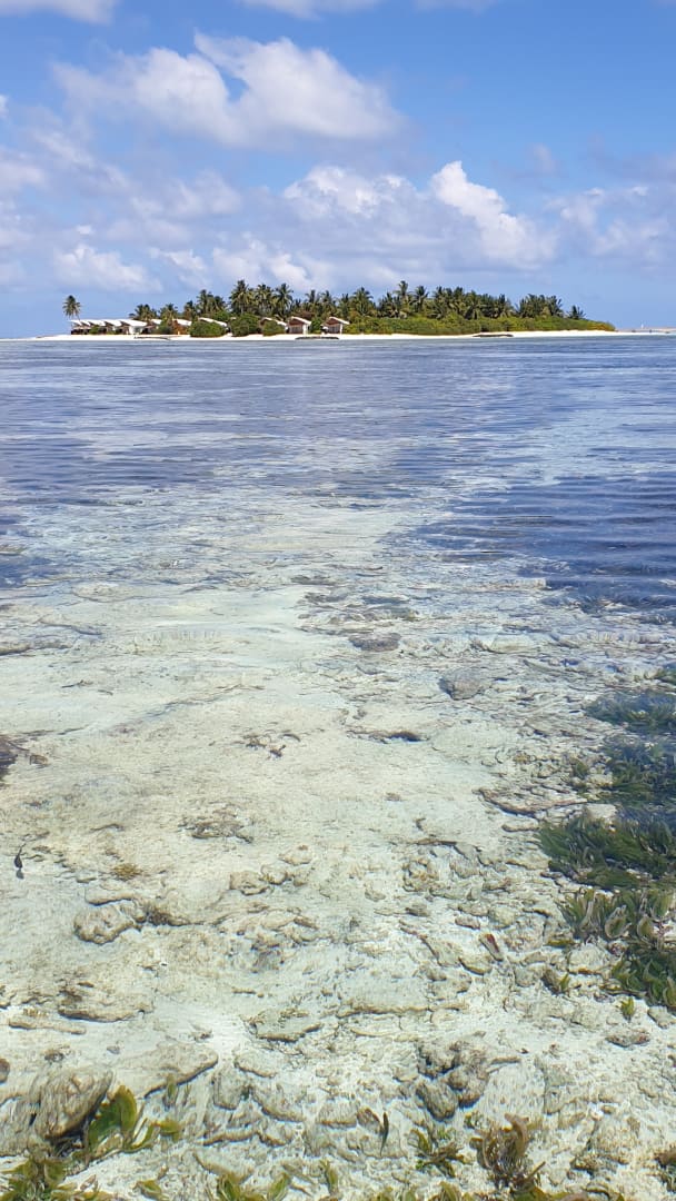 Blick von Terrasse ins Riff bei Ebbe ca. 40 cm Wasserstand