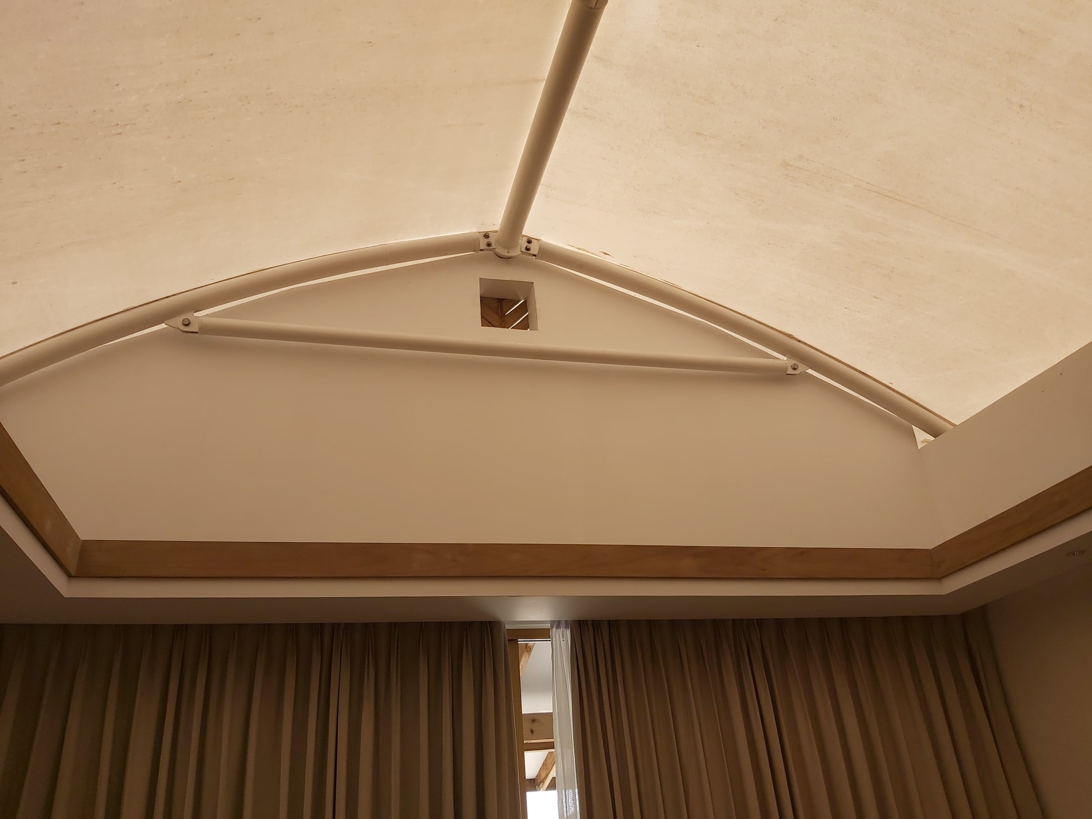 Planendach, welches bei Wind laute Geräusche verursacht.
