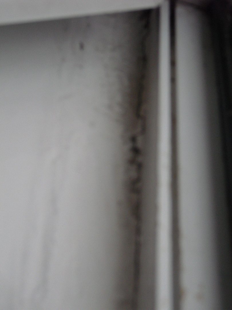 Fensterbank mit Rissen und Dreck in den Rissen. Nicht gerade hygienisch.