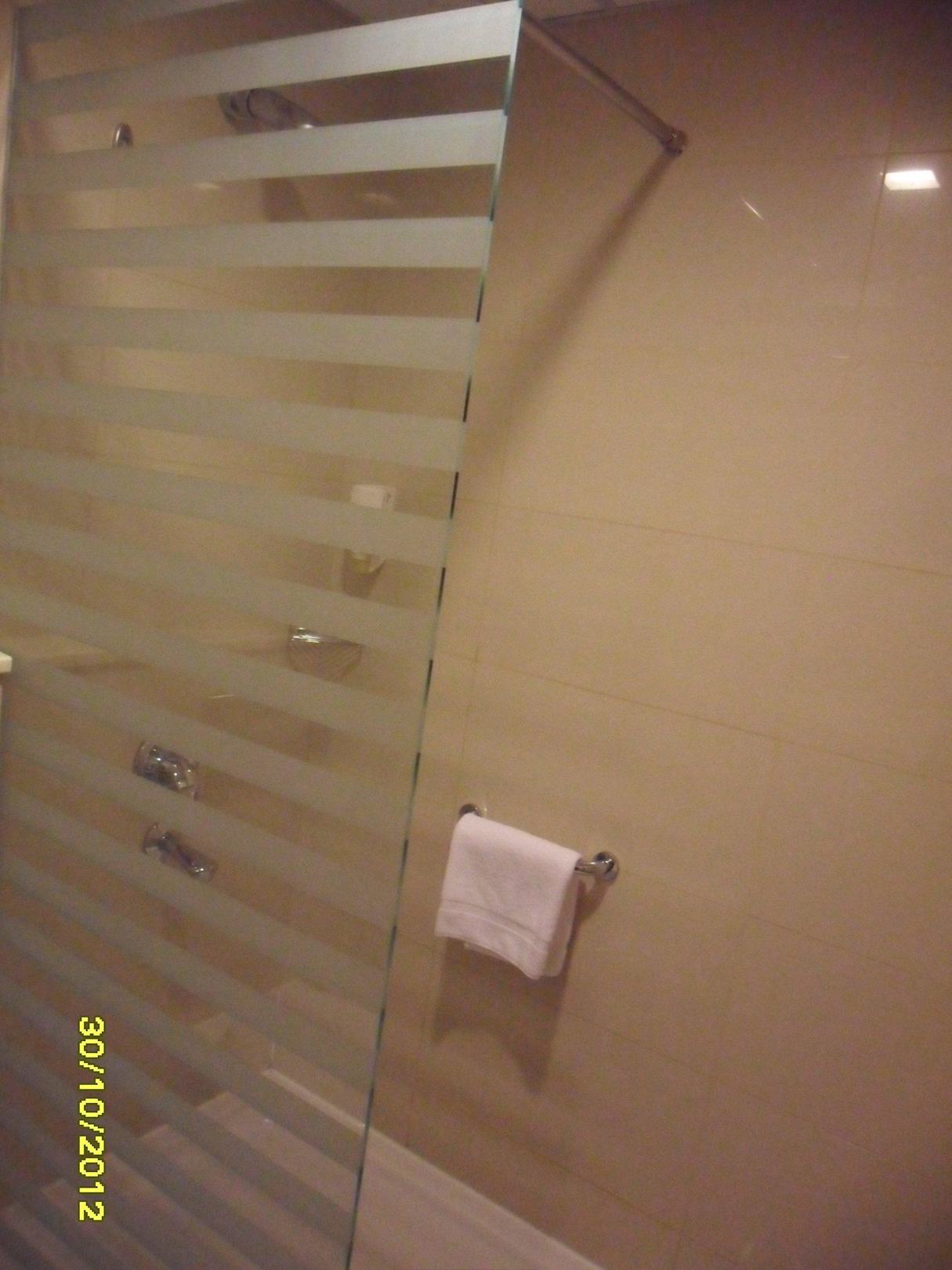 Dusche...durch halbe Scheibe