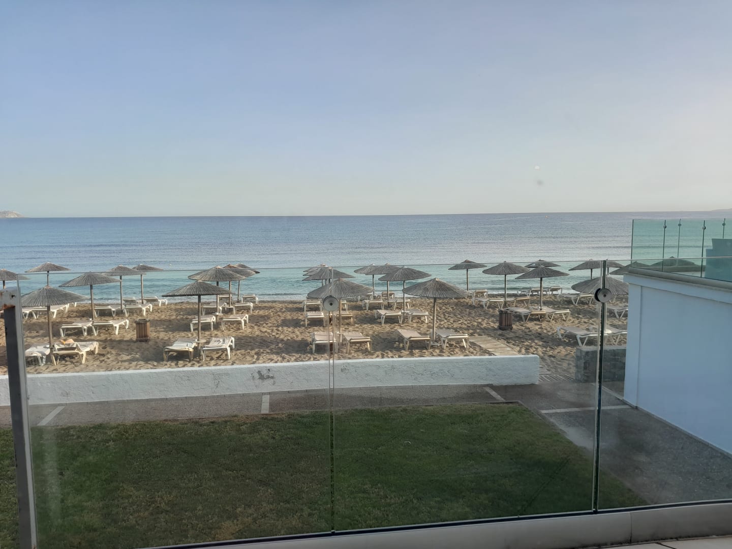 Vom Restaurant aus fotografiert - Scheibe mit Fliegengitter davor