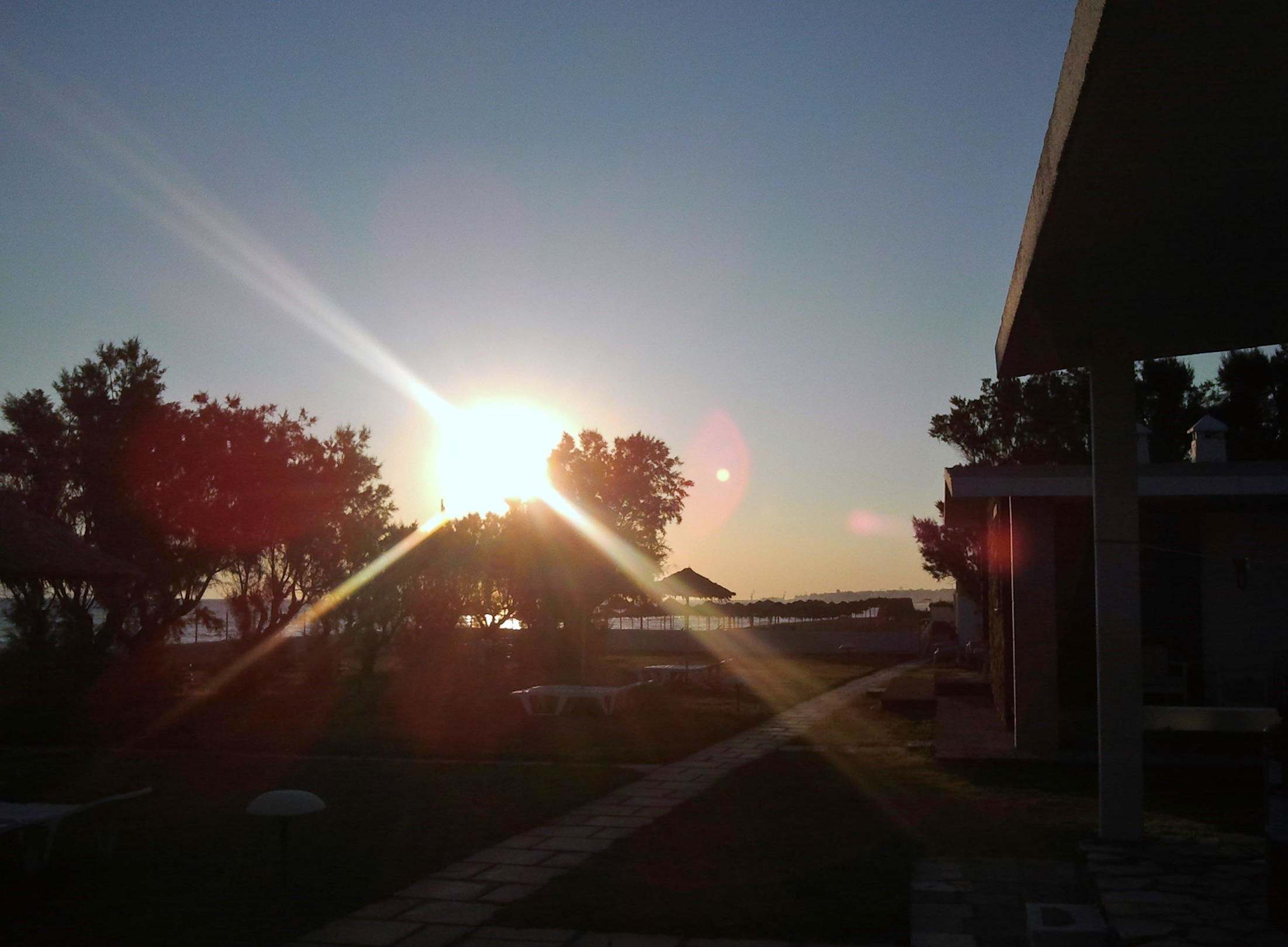 Morgens Blick vom Bungalow zum Liegenstrand