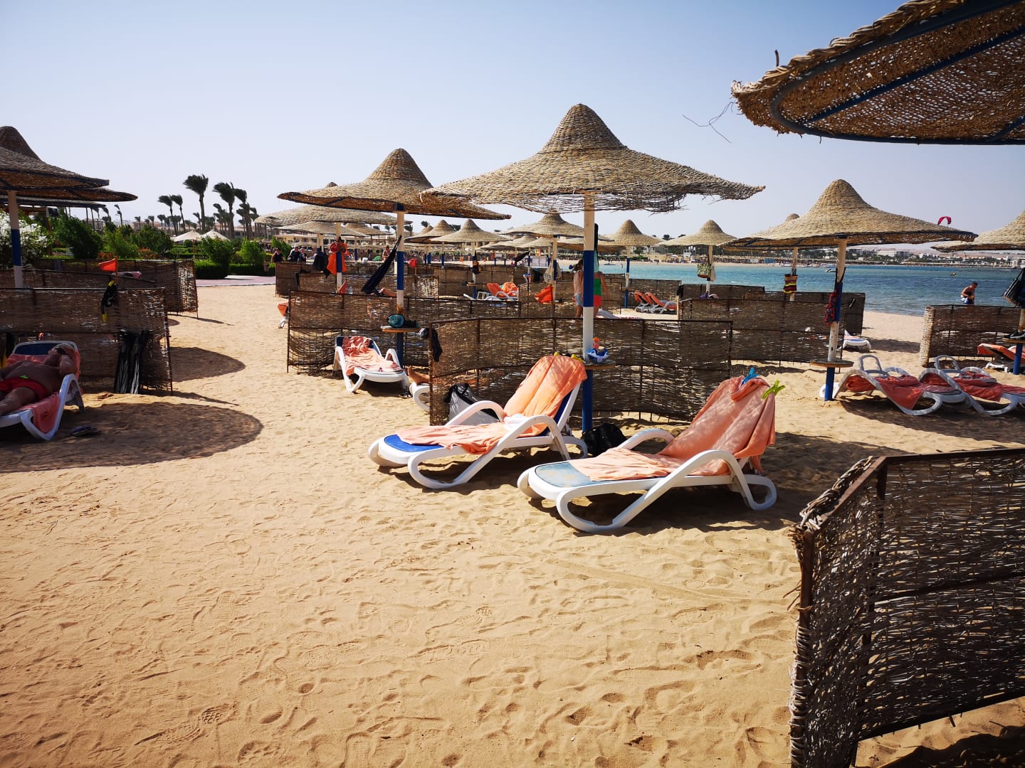 Großzügiger Platz am Strand, kein Besetzungsstress und ganz wichtig: mit der roten Fahne dürfen einen die üblichen Strand-Verkäufer nicht ansprechen.