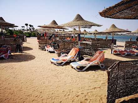 Großzügiger Platz am Strand, kein Besetzungsstress und ganz wichtig: mit der roten Fahne dürfen einen die üblichen Strand-Verkäufer nicht ansprechen.