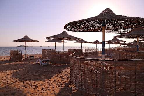 Strand mit Liegen und mit Windschutz