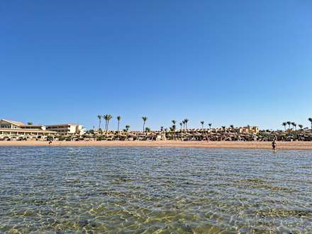 Blick aufs Hotel vom Meer aus