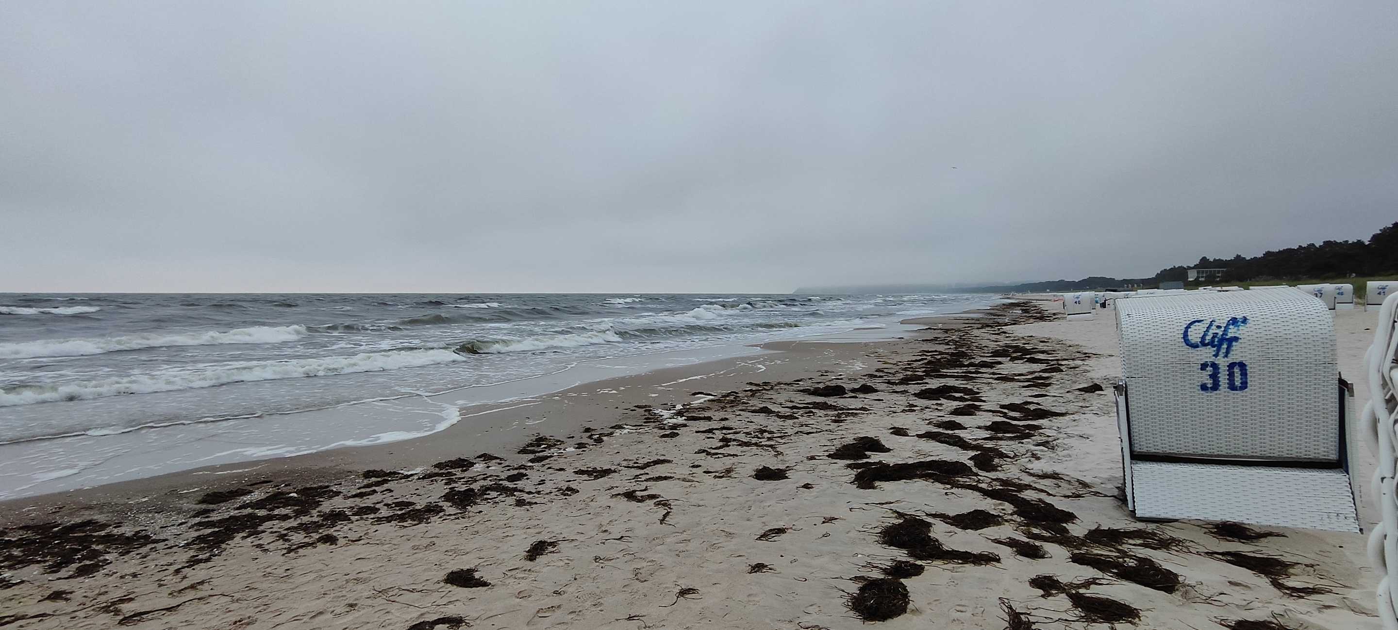 Strandimpressionen bei Seenebel. Blick Richtung Baabe/Göhren