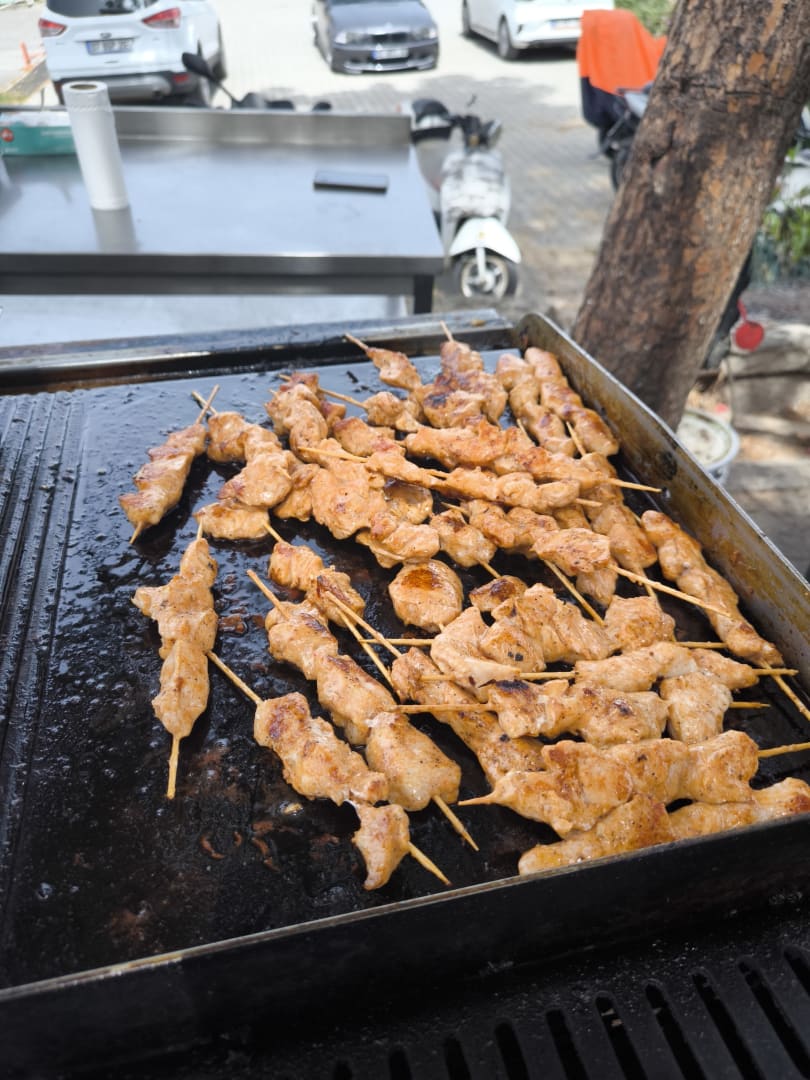 Hähnchenspiesse in widerlicher Konzestenz - innen oft roh.