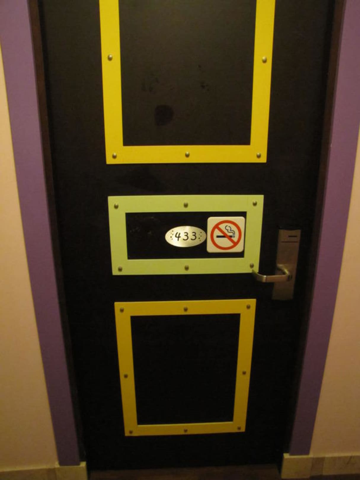 Unsere Zimmertür zum Dachgeschosszimmer Nr. 433. Wird mit einer Karte geöffnet, wie man das ja kennt.