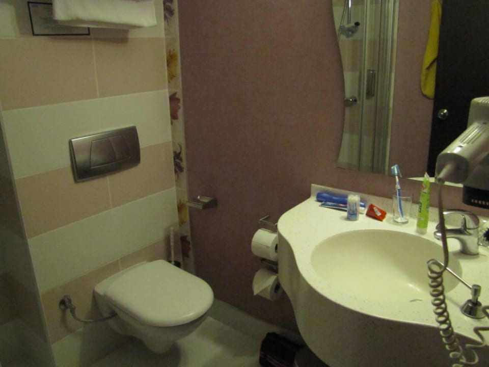 Sehr schönes kleines Bad unseres Dachgeschosszimmers. Linksseitig befindet sich die Dusche.