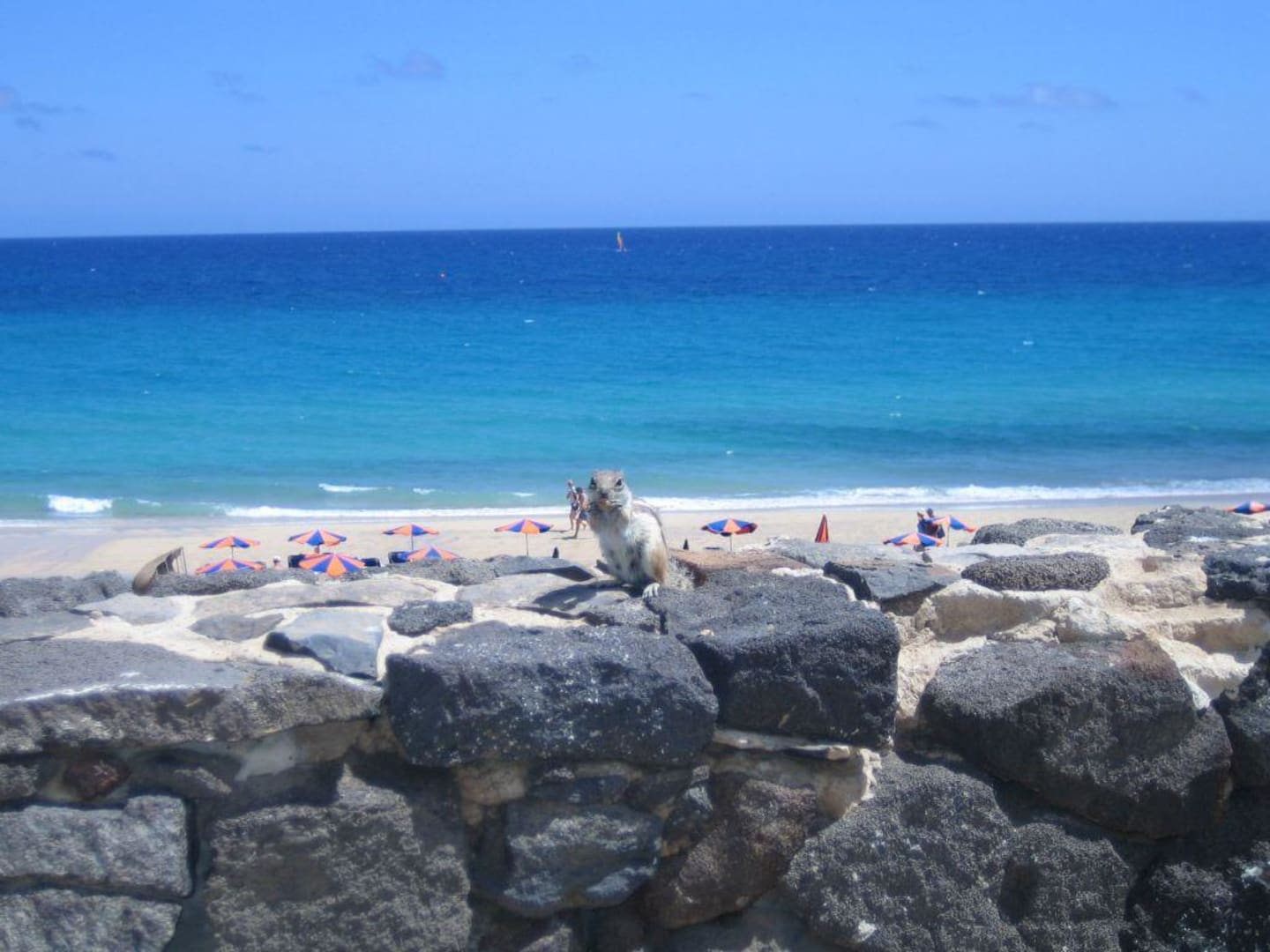 neugierige und hungrige Streifenhörnchen am Strand