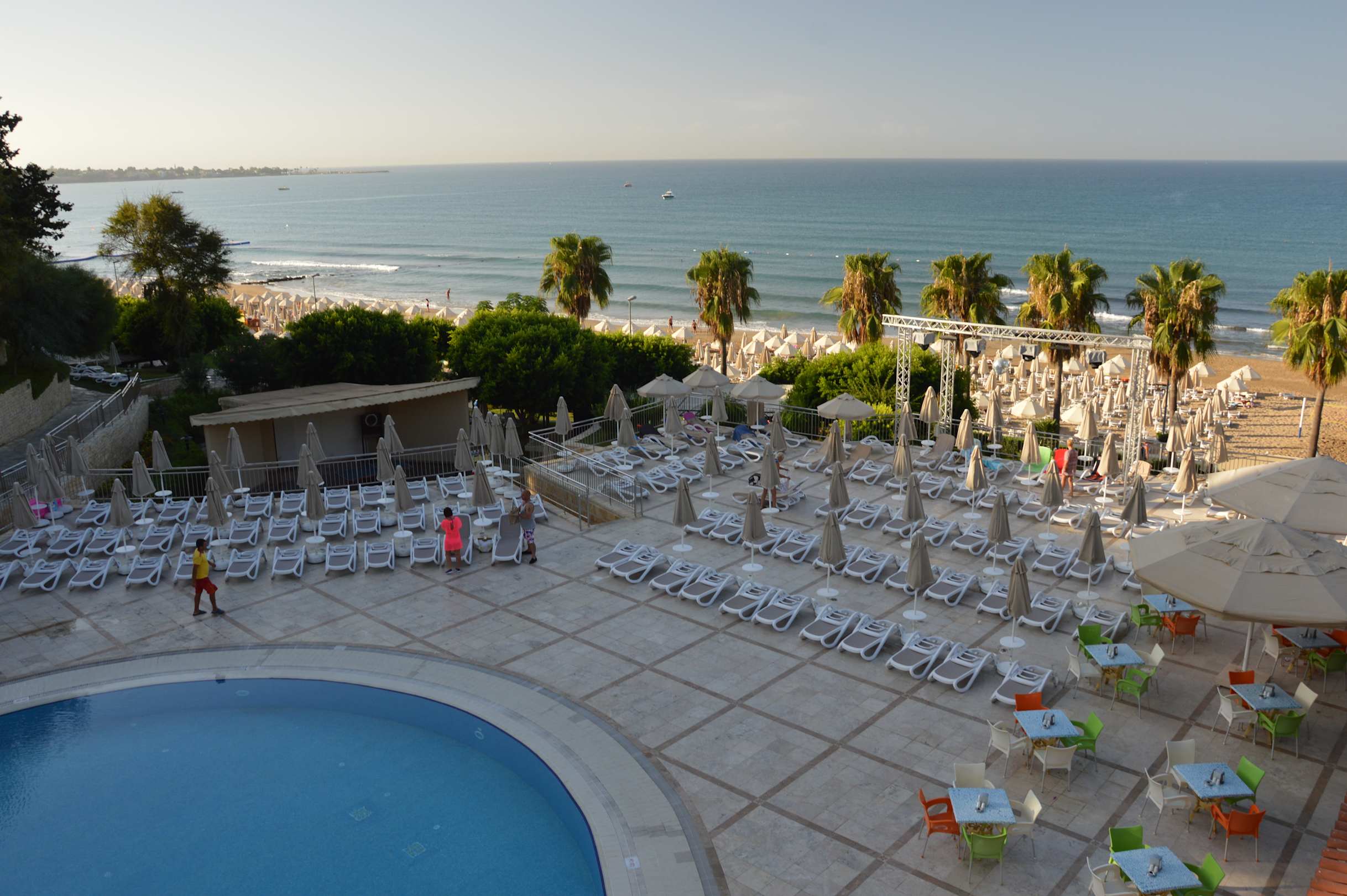 Blick auf Pool und Meer im Hintergrund