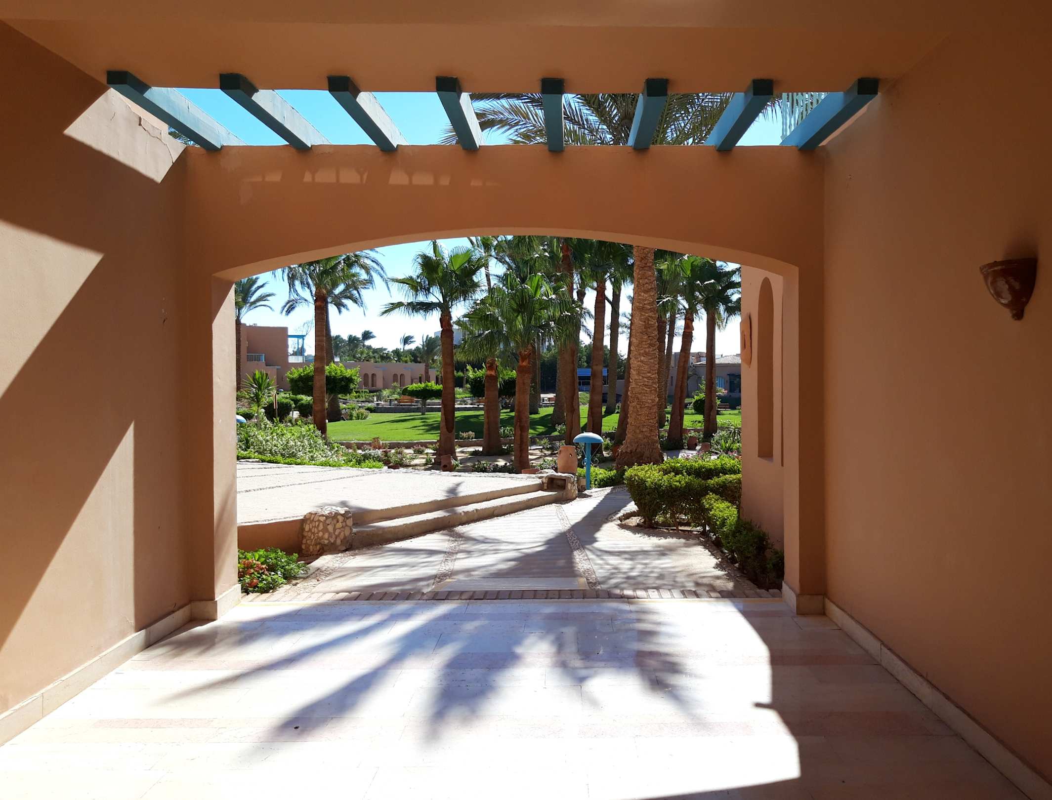 Dies war einer der Durchgänge von unserem Zimmer zum Garten ins Restaurant Marco Polo wo das Frühstück, Mittagessen und Abendessen eingenommen wird.