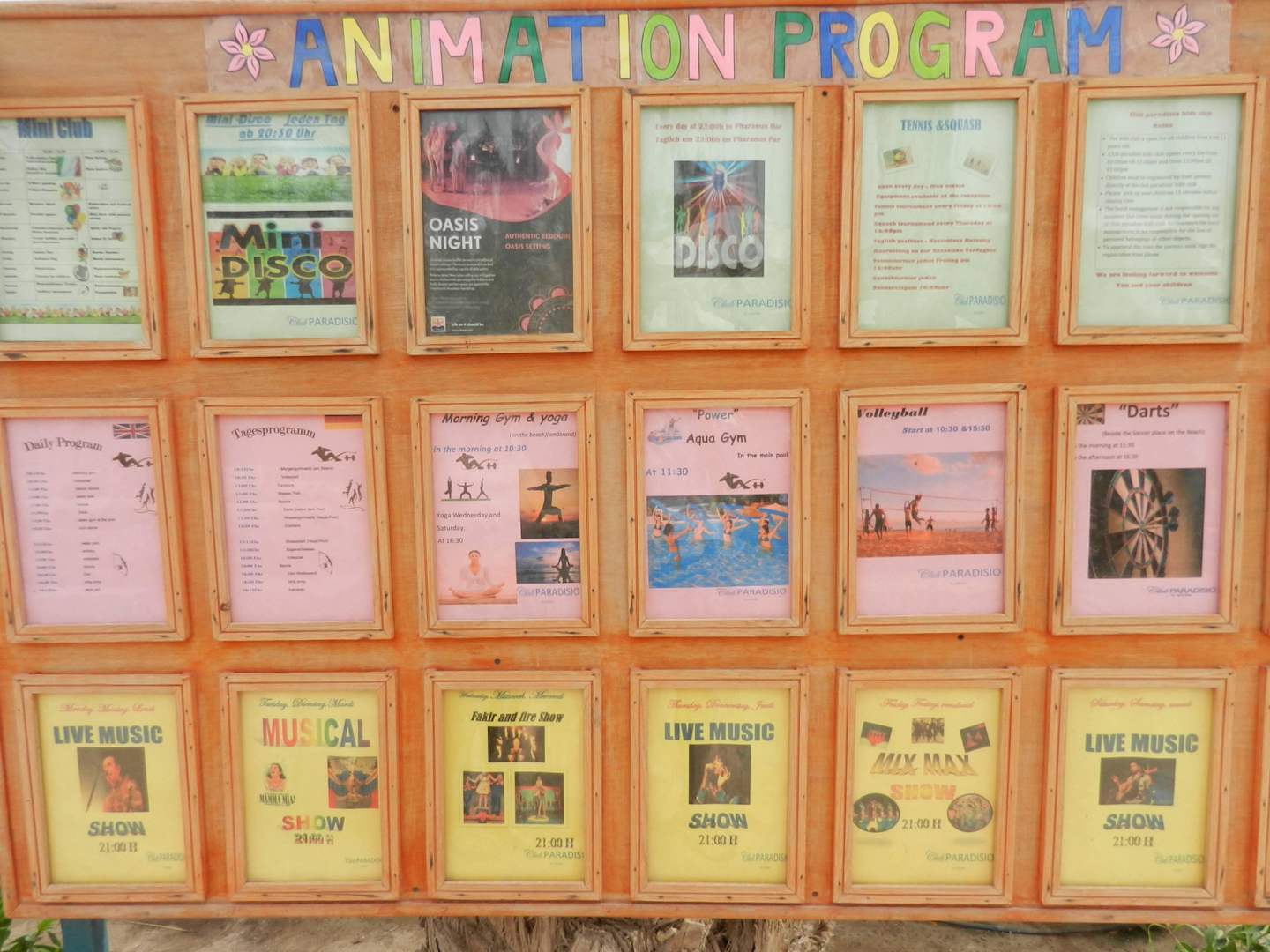 Animationstafel Club Paradisio El Gouna, Red Sea