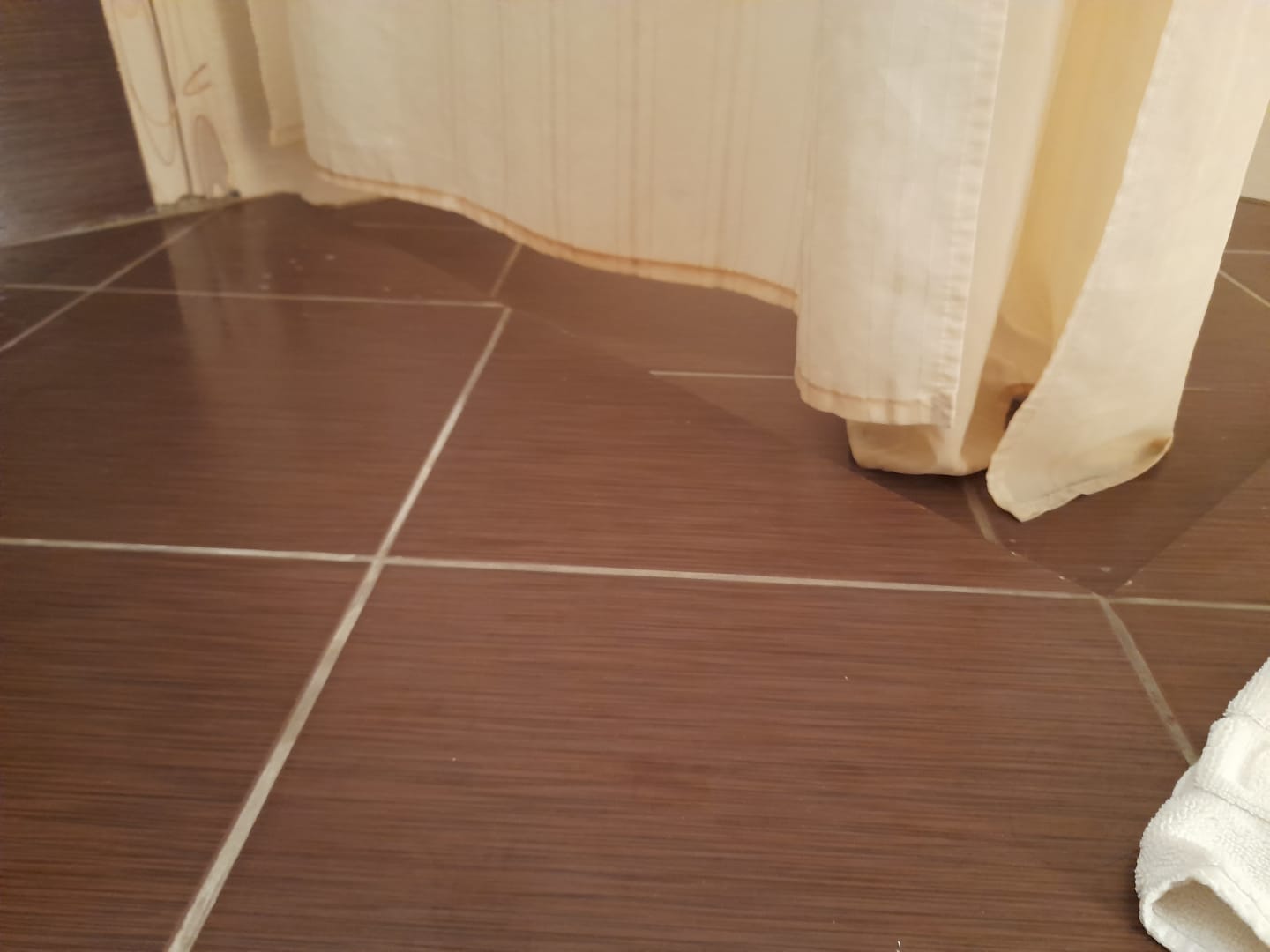 Duschvorhang zu kurz. Halbes Bad dadurch unter Wasser.