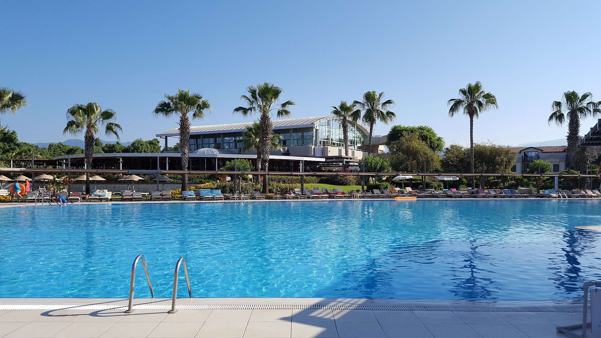 riesiger Pool, dahinter ist das Restaurant
