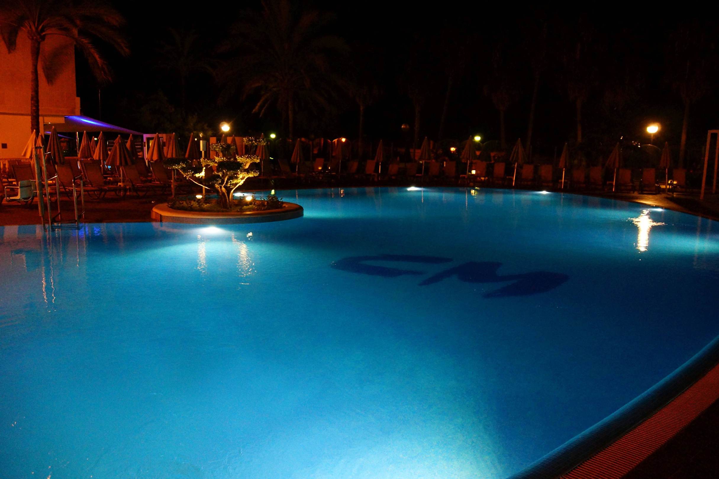 Poolanlage bei Nacht