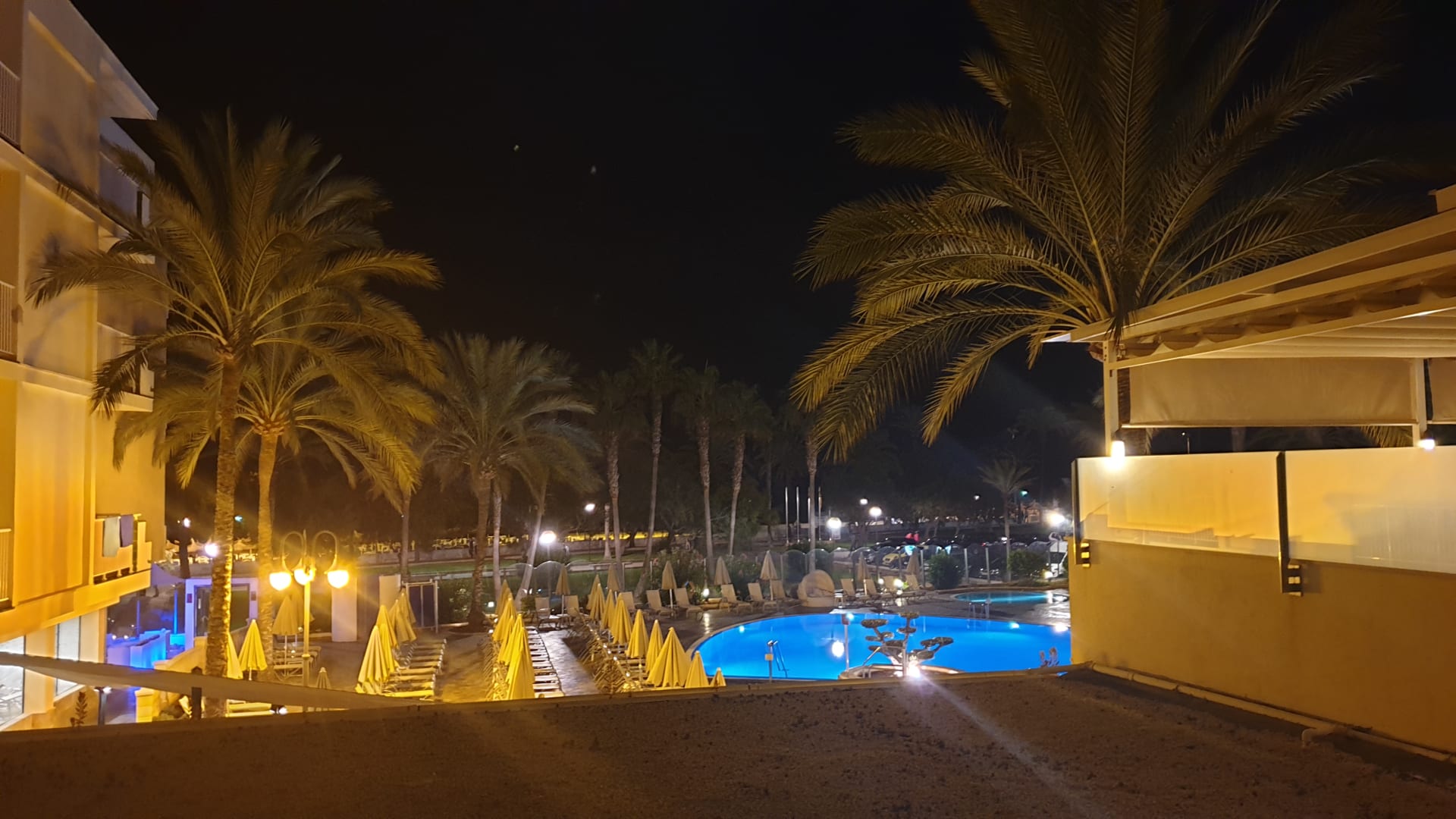 Am Abend mit Blick zum Pool