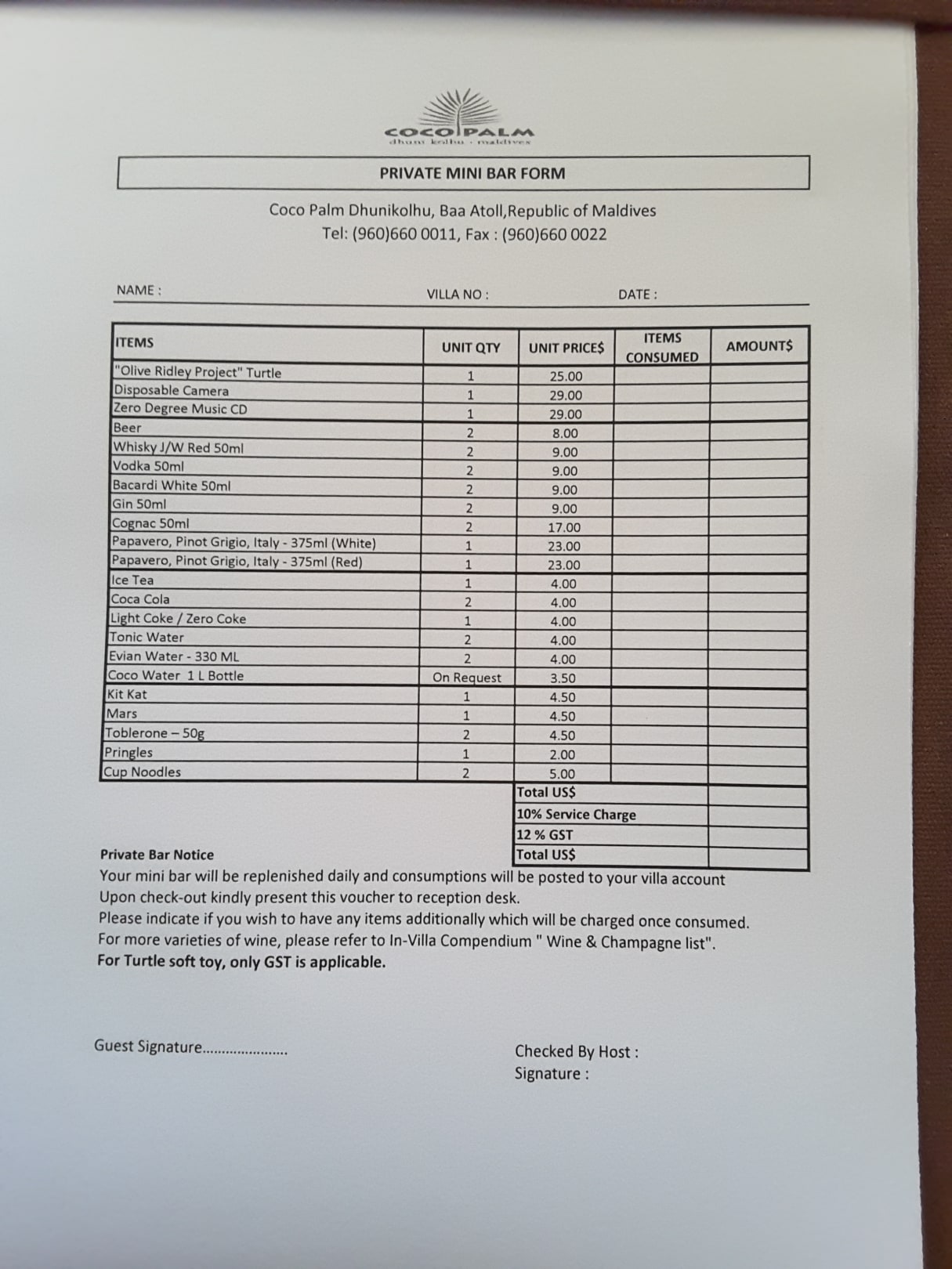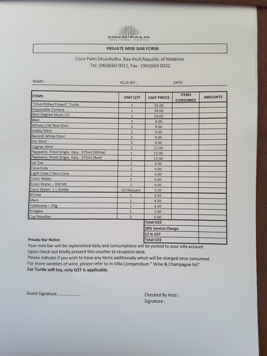 Minibar Preise