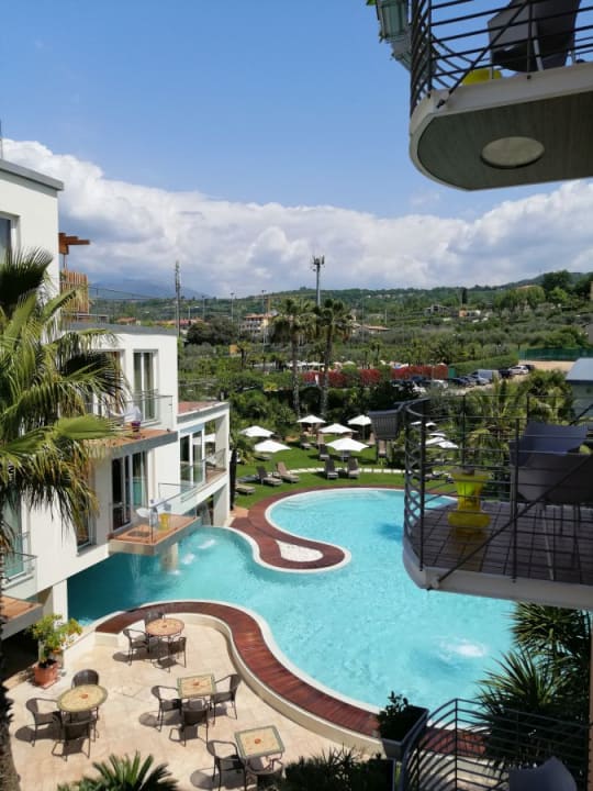 Pool an der Hotelanlage und im Hintergrund der Garten mit Pool.