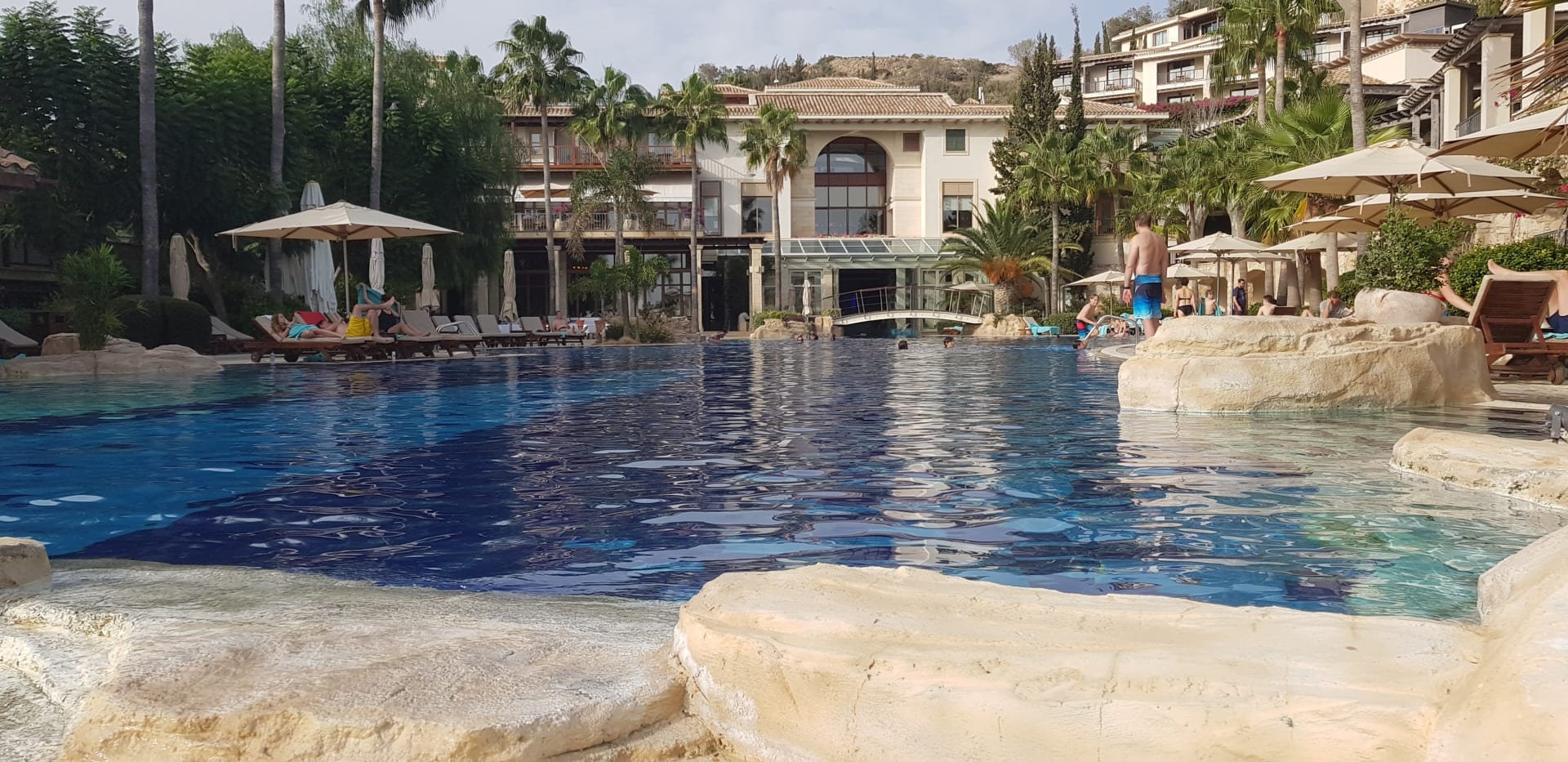 Gr. Pool mit Blick auf Haupthaus/ Wellnessbereich