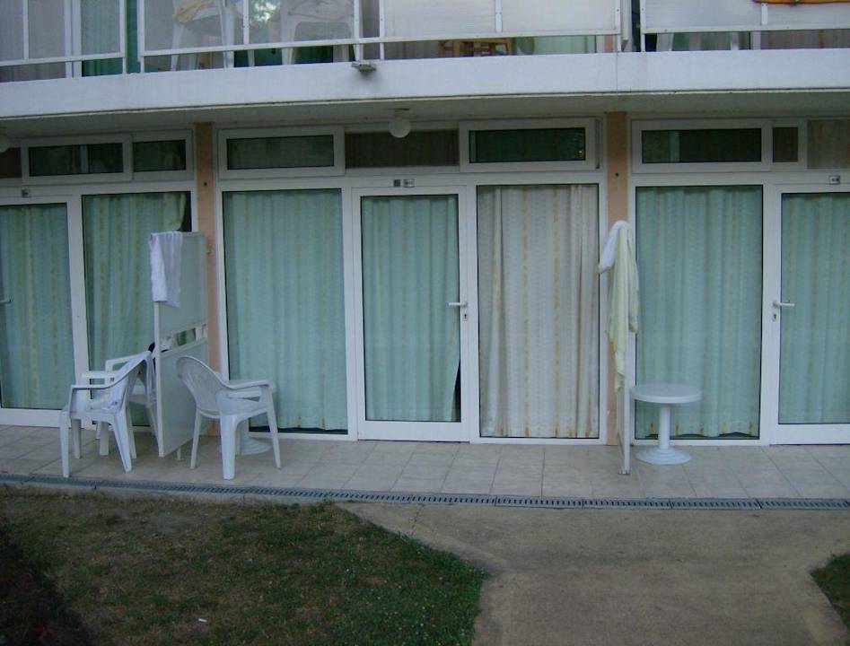 Wir haben ein Zimmer im Erdgeschoss. Direkt vor dem Animationrondell.