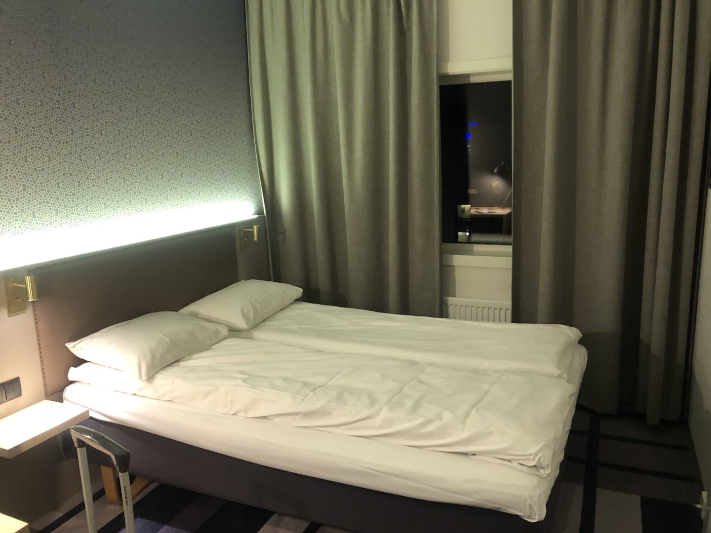Blick vom Eingangsbereich aus auf das Bett