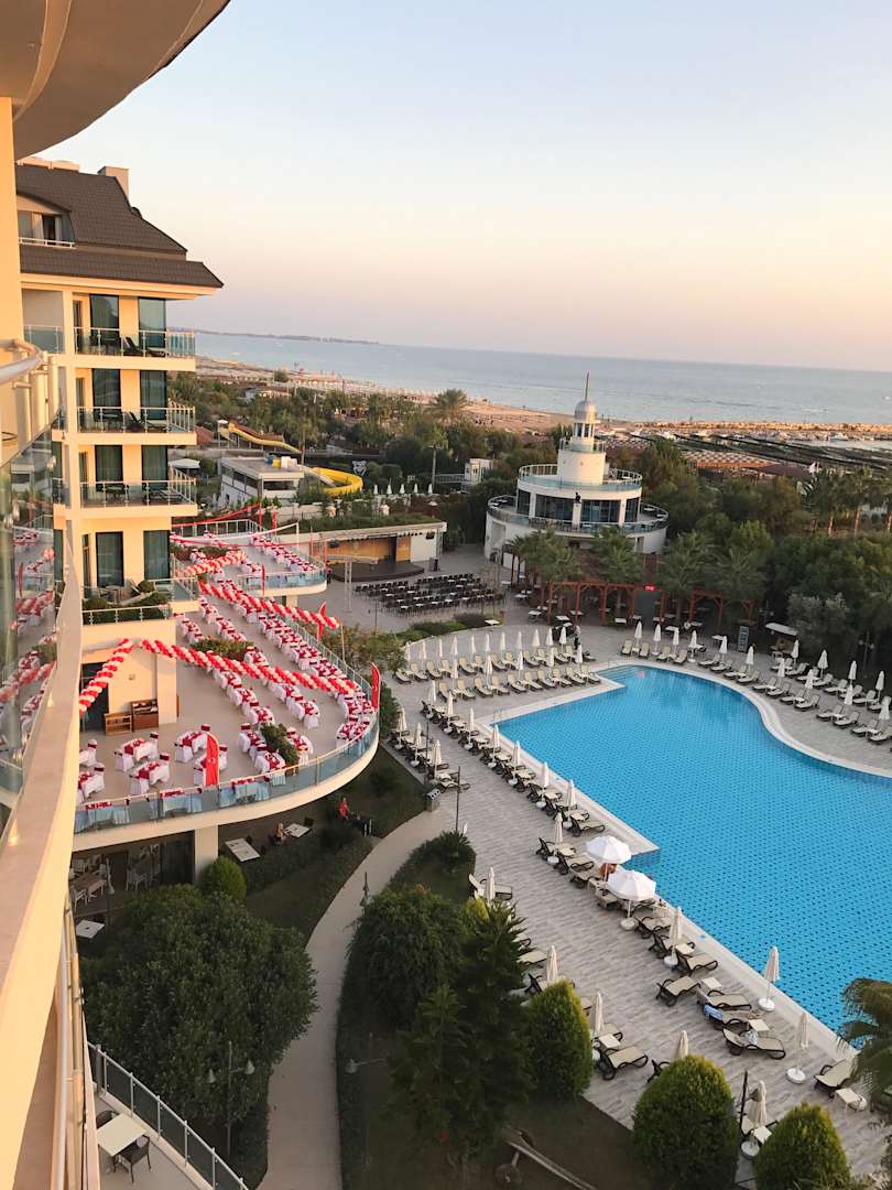 Aussicht auf den Pool vom Balkon der Suite 6407