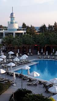 Abendstimmung im Poolbereich.