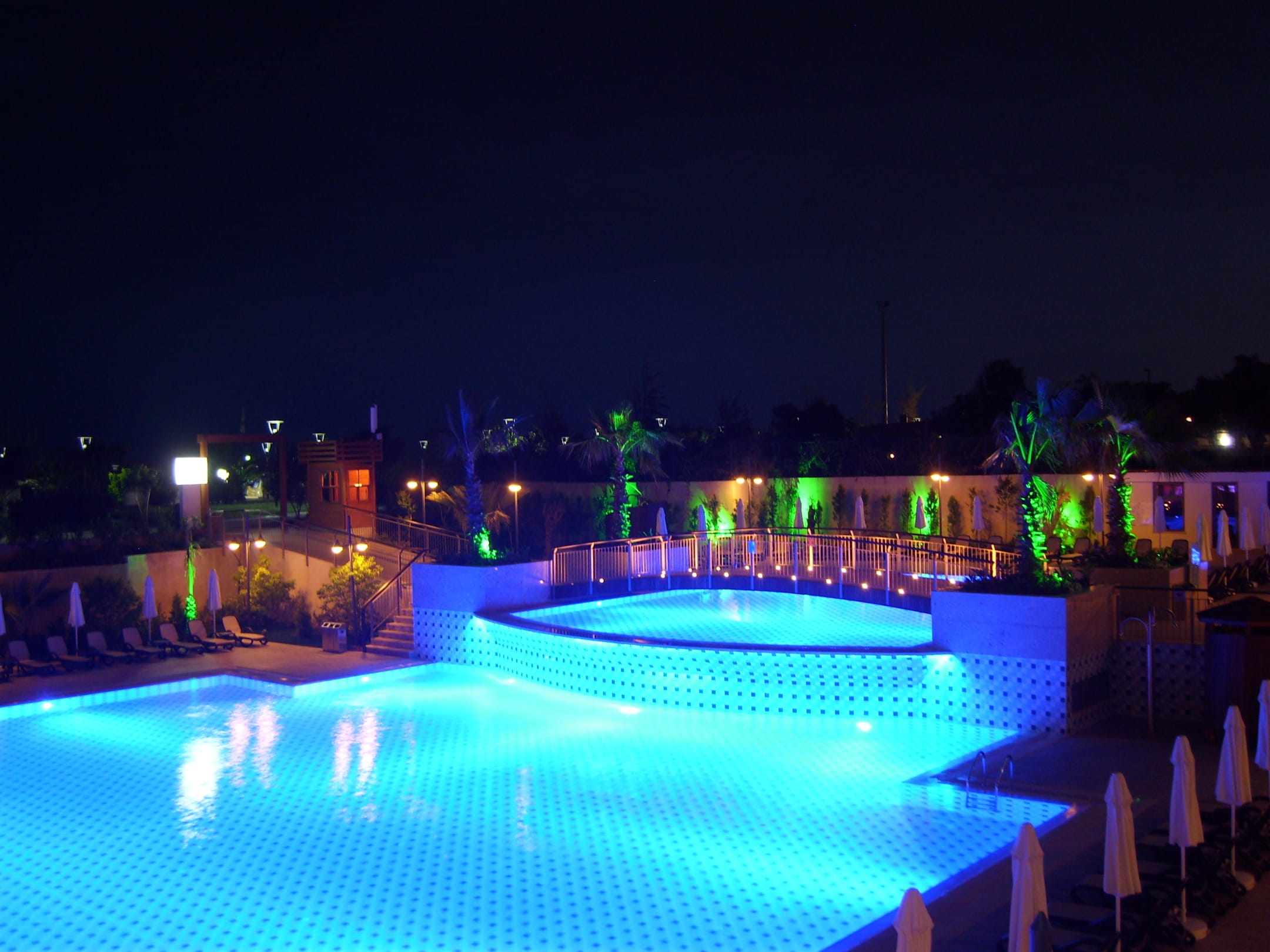 Obere und untere Pool bei Nacht