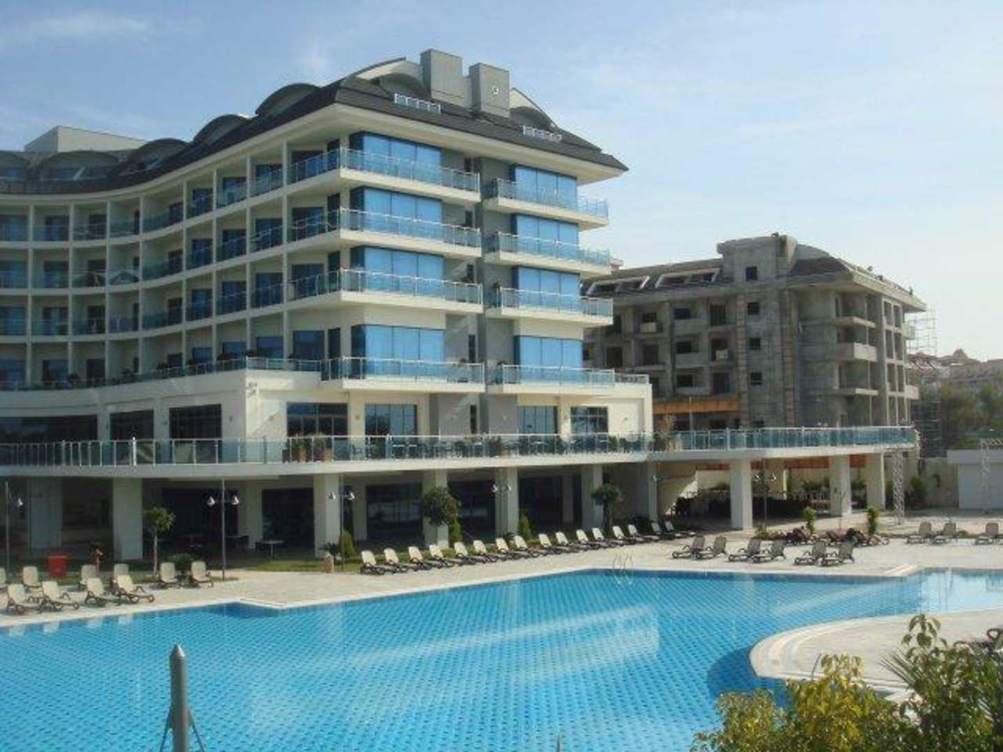 Blick auf den Pool und die Baustelle