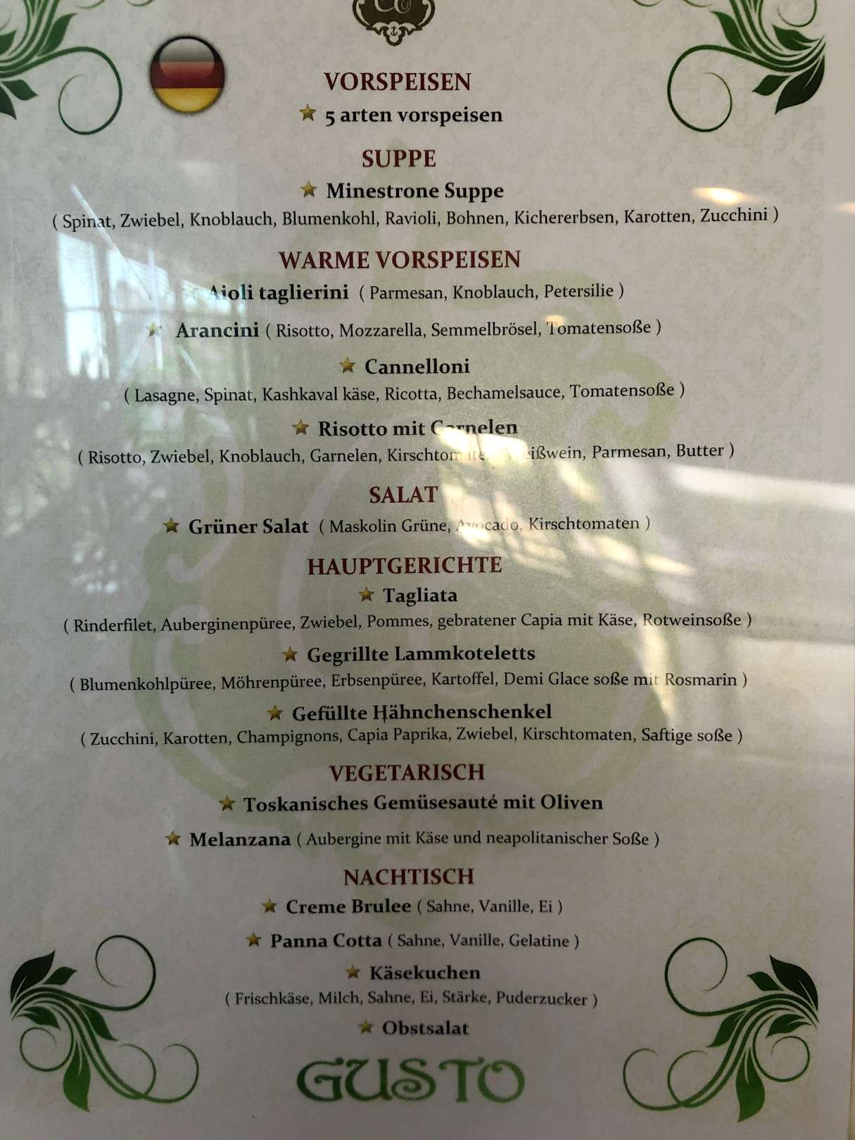 Spezialitätenrestaurant Gusto Menue
