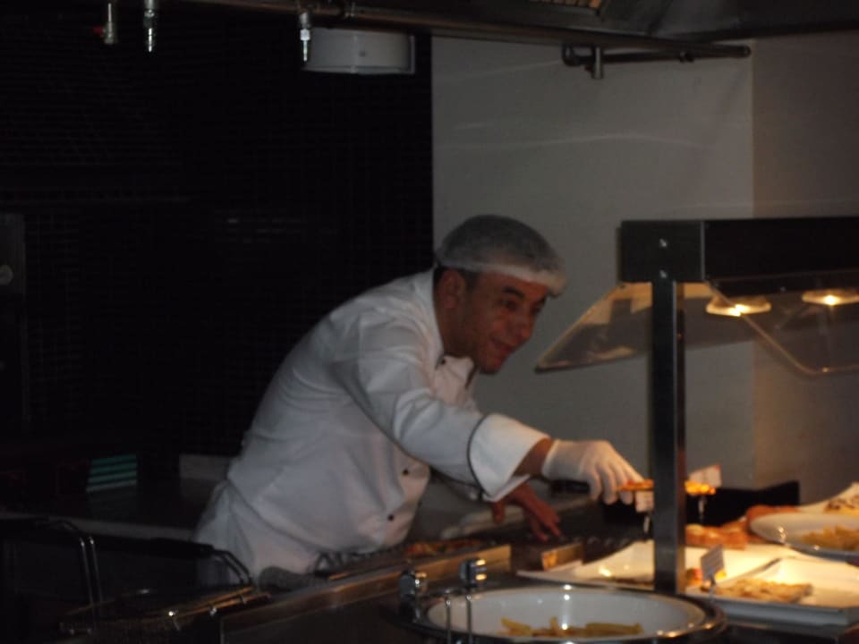 Hasan (immer freundlich)bei der Pizza- Zubereitung