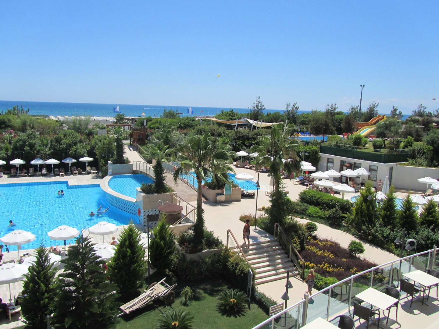 Brücke über den Pool hin zum Hotelstrand