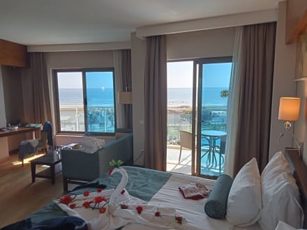 Der nutzbare Balkon erstreckte sich über die gesamte Zimmerbreite.