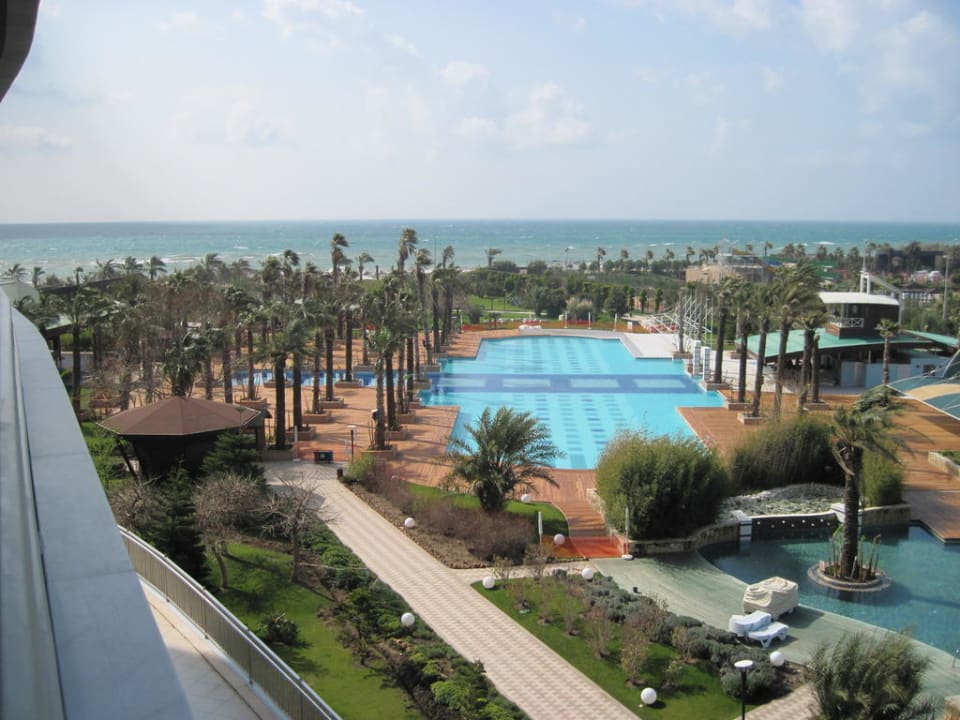 Ansicht auf den Pool vom Balkon