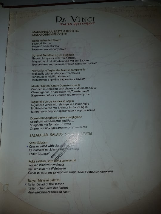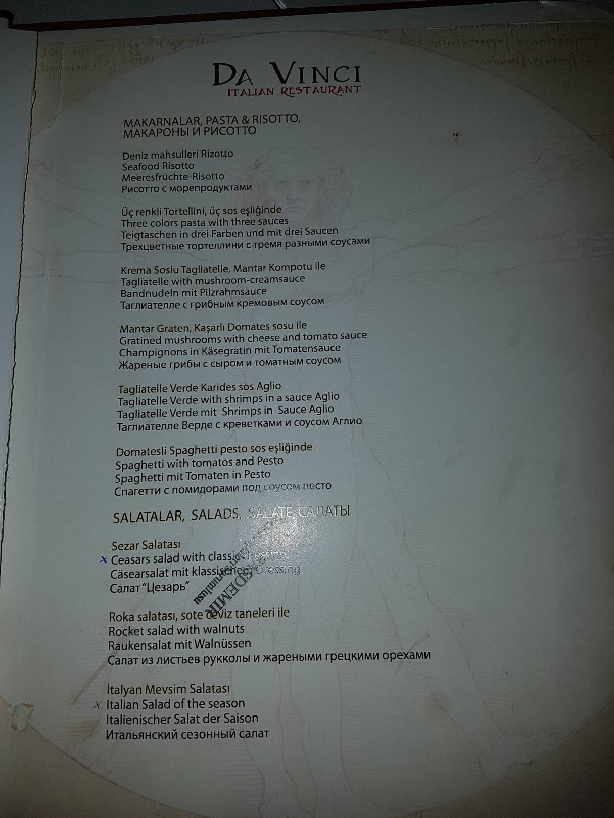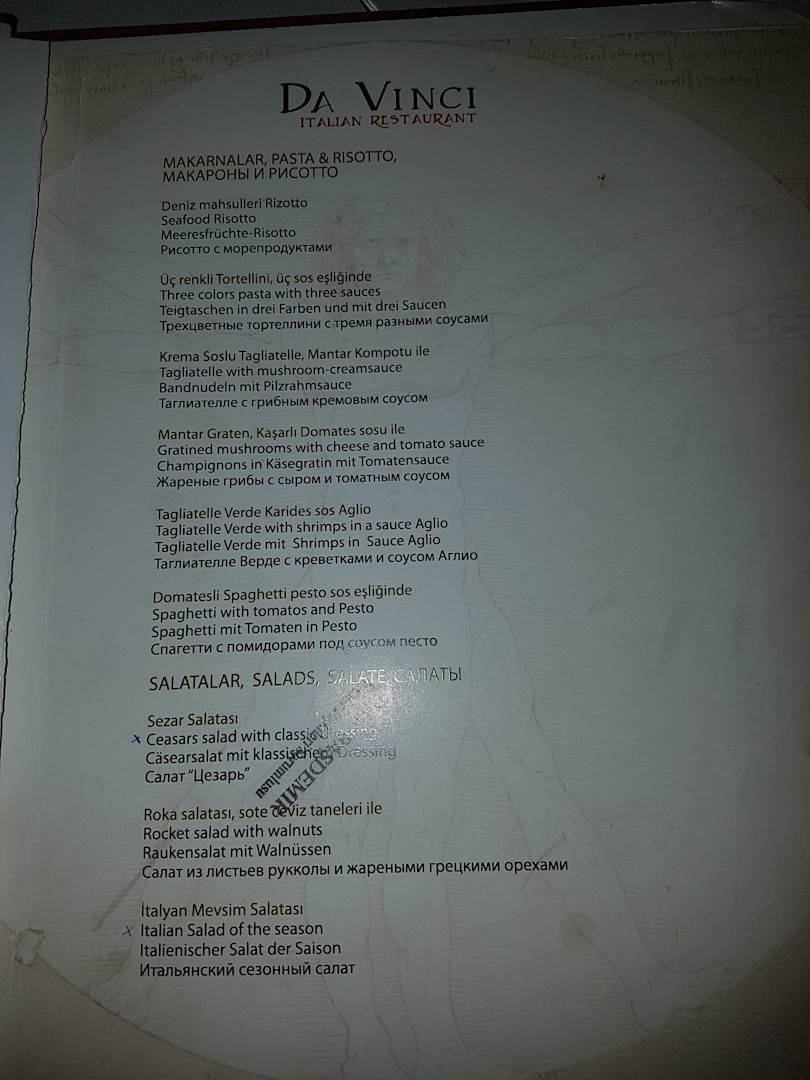 Speisekarte Italiener