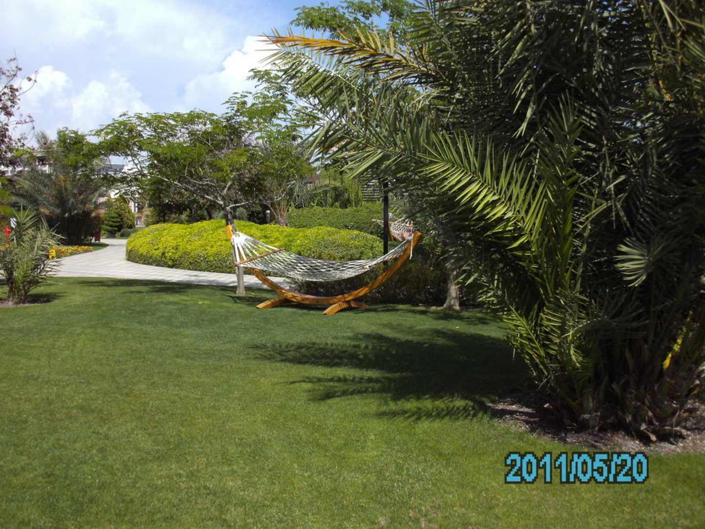 Tuin met heel veel hangmatten
