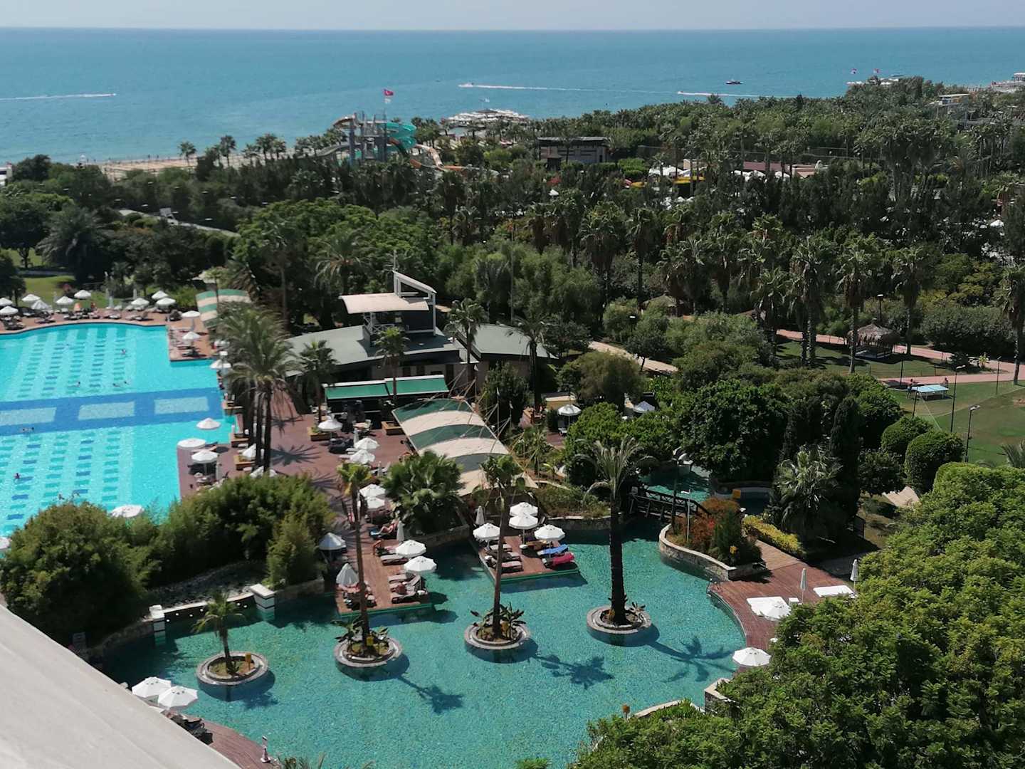 Blick auf den Hauptpool (links) und den Relaxpool +16