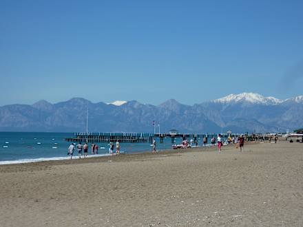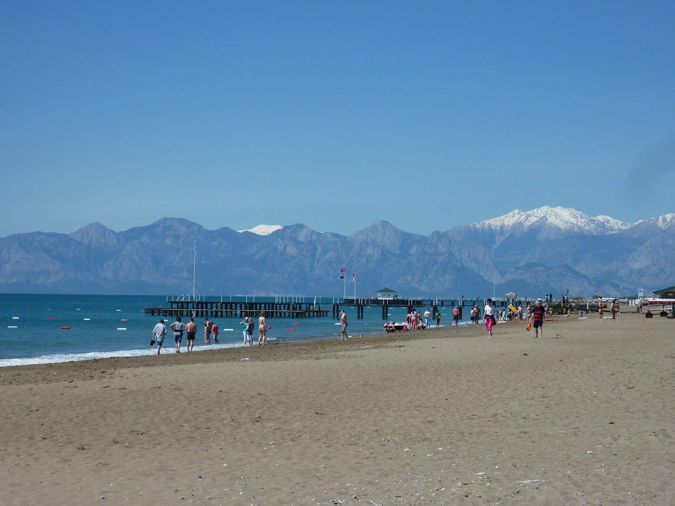Klarer Blick am Hotelstrand Richtung Schneeberge