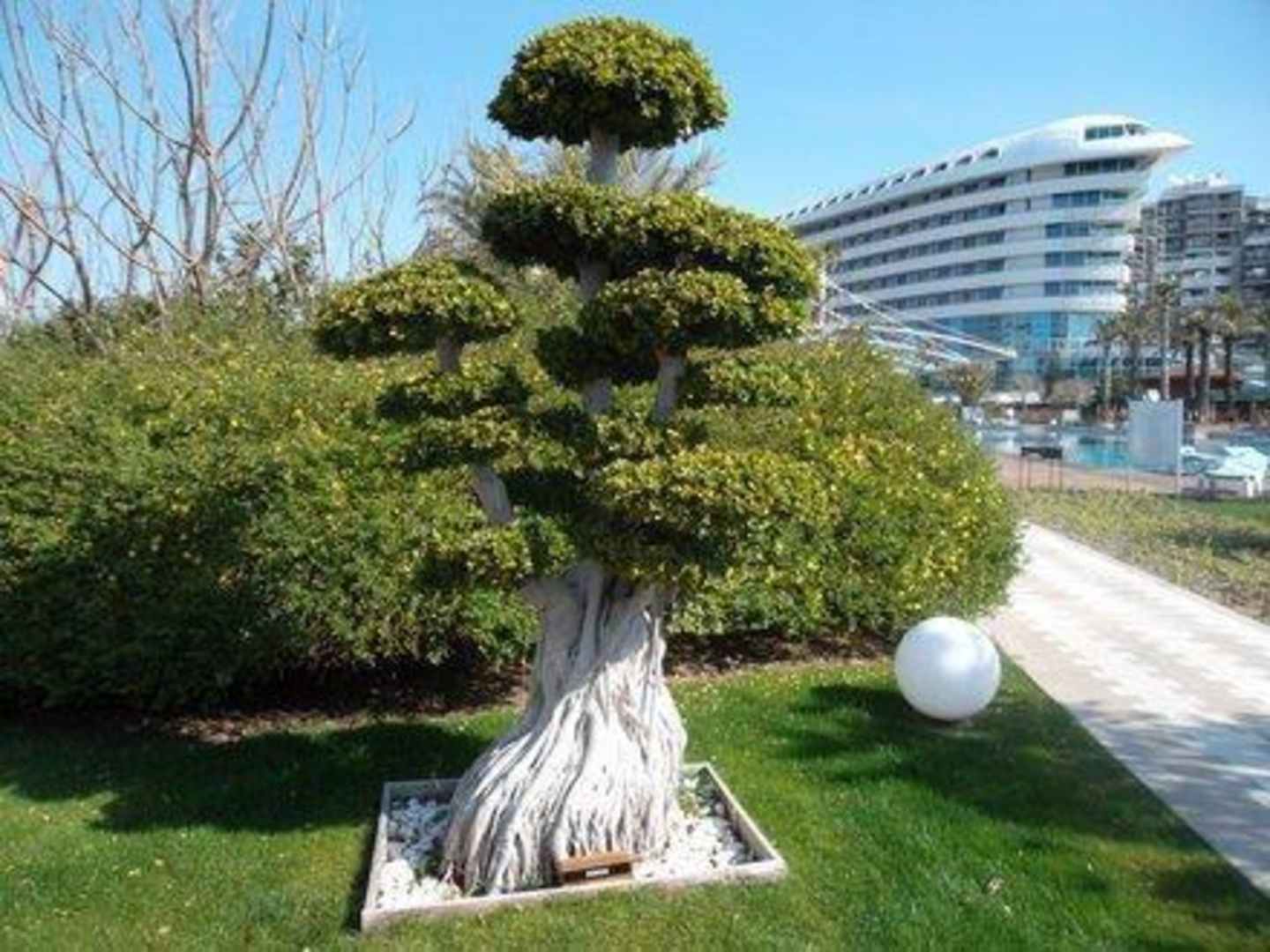 Gartenanlage mit Blick auf Hotel