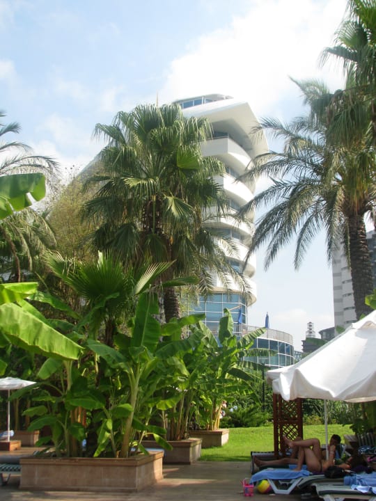 Garten mit Blick auf das Hotel